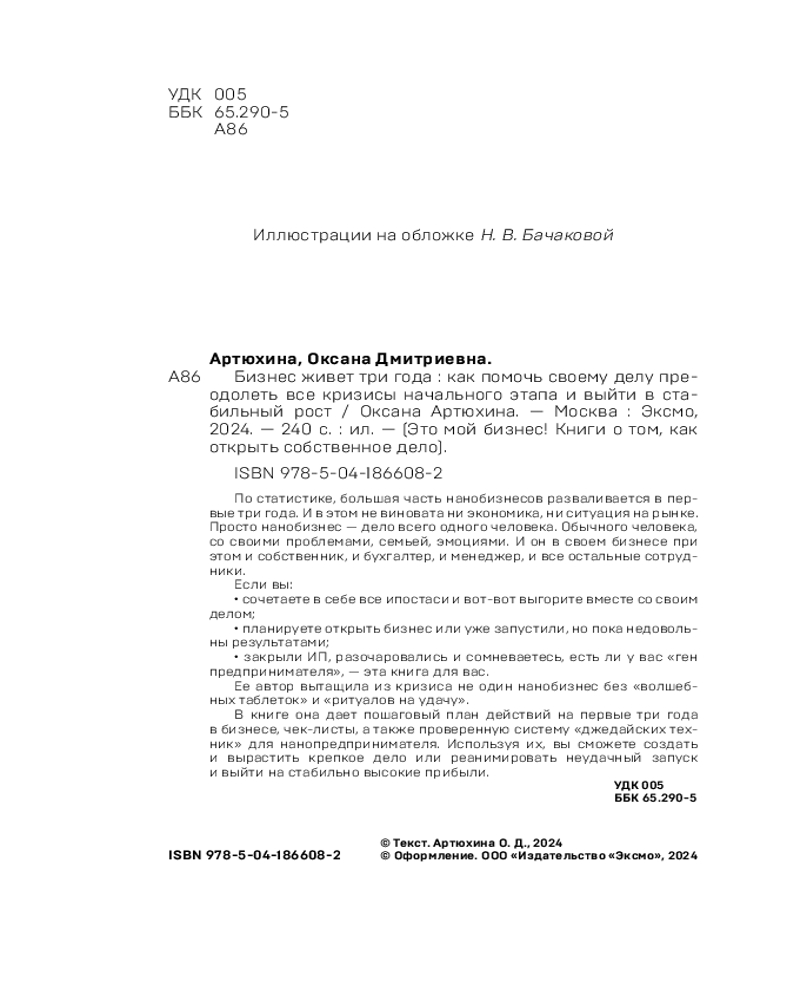 💳 Оплатить за товар можно при получении 🇰🇿 Есть бесплатная доставка по Казахстану 🎁 Копите бонусы с каждой покупки Серия: Это мой бизнес! Книги о том, как открыть собственное дело По статистике, большая часть нанобизнесов разваливается в первые три года. И в этом не виновата ни экономика, ни ситуация на рынке. Просто нанобизнес — дело всего одного человека. Обычного человека, со своими проблемами, семьей, эмоциями. И он в своем бизнесе при этом и собственник, и бухгалтер, и менеджер, и все остальные сотрудники. |