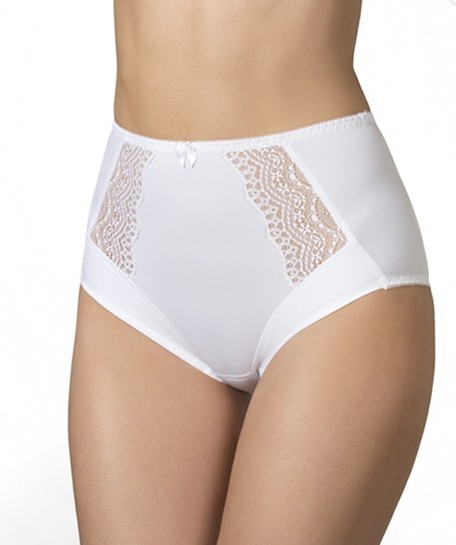 Трусы «слип» из эластичного трикотажного полотна и эластичного кружева. Высокая линия талии. Передние нижние детали выполнены всгиб. Отделка - атласный бантик.