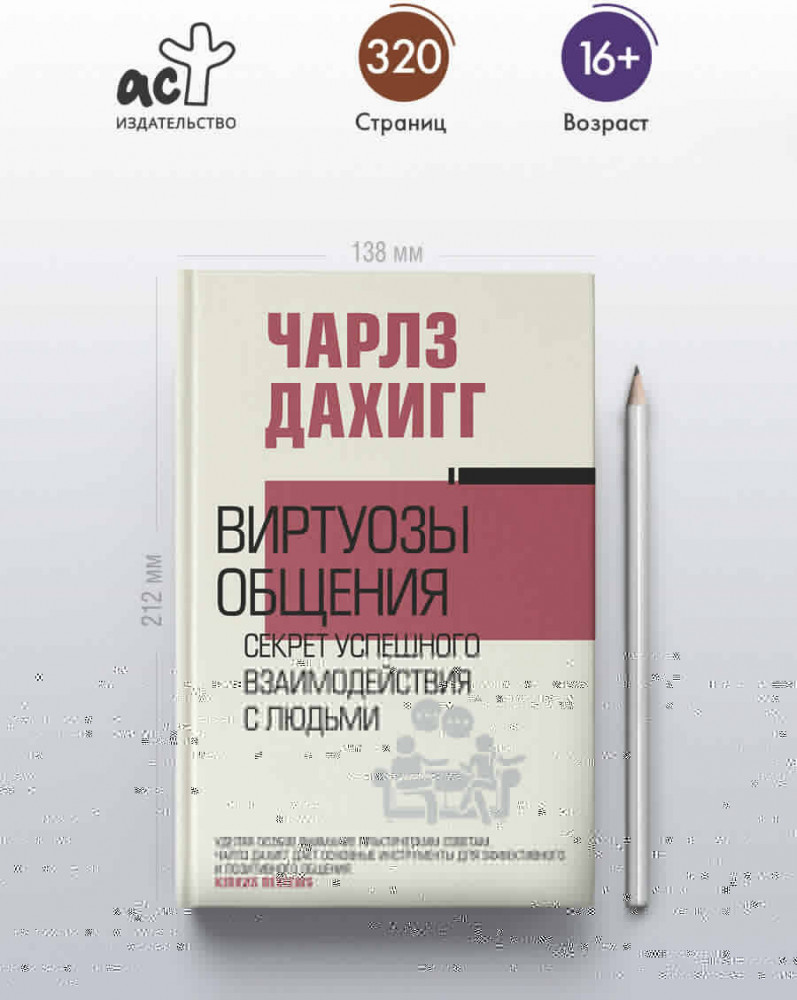 💳 Оплатить за товар можно при получении 🇰🇿 Есть бесплатная доставка по Казахстану от 1 дня 🎁 Копите бонусы с каждой покупки Серия: Власть и успех Виртуозы общения — это люди, способные успешно провести любую беседу. Они могут затрагивать сложные, а порой и не самые приятные темы для собеседника, при этом не задевая его чувств. Они знают, как расположить к себе человека и заставить его поделиться своими мыслями. Они — отличные переговорщики и руководители. Но как им это удается? На страницах этой книги Чарлз Дахигг делится принципами эффективного общения. Приводя примеры из практики вербовщиков ЦРУ и врачей, руководителей Netflix и создателей сериала «Теория Большого взрыва», он наглядно показывает, как установить контакт с любым человеком, минуя кажущиеся непреодолимыми различия. Применив новые методики и практики, вы научитесь слышать и быть услышанными, поймете, почему общение не задалось и что нужно сделать, чтобы исправить ситуацию. Благодаря этим знаниям любая беседа, будь то дружеский разговор или деловые переговоры, будет протекать легко и продуктивно. |