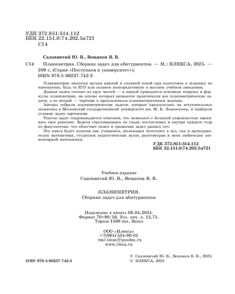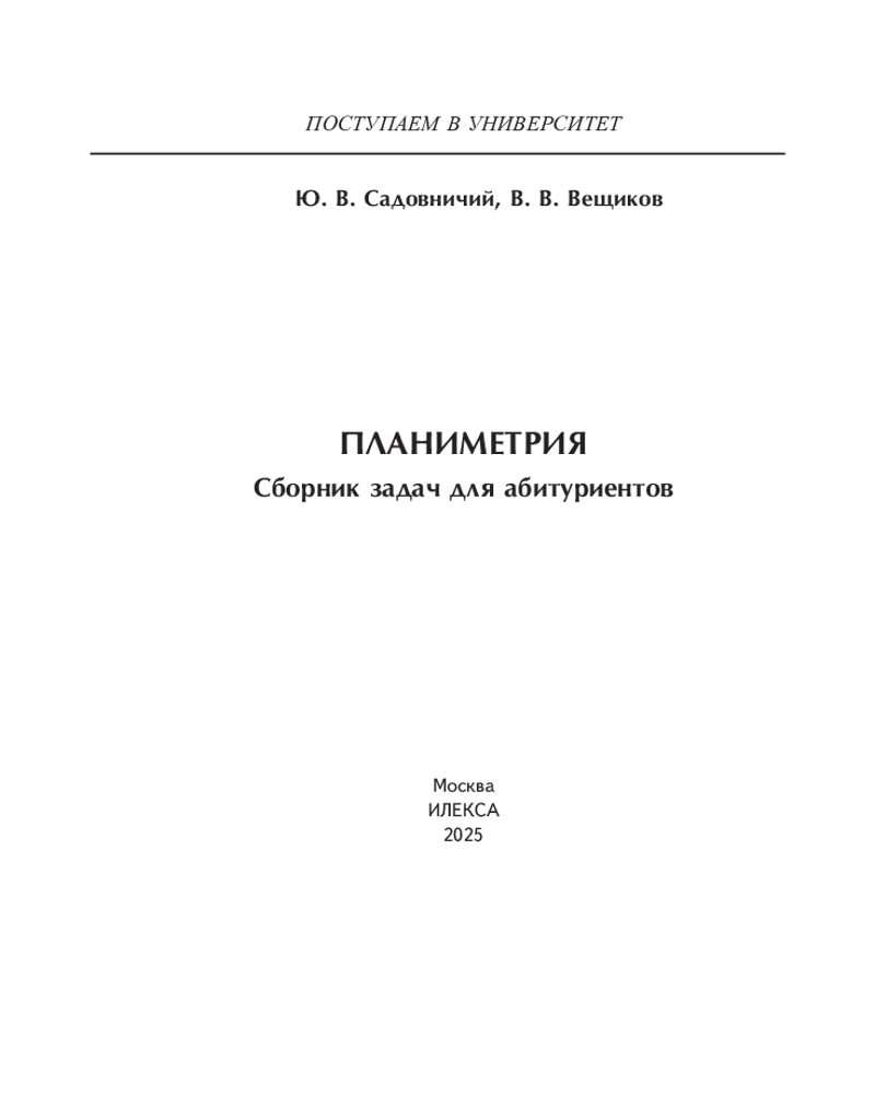 Планиметрия. Сборник задач для абитуриентовВ. В. Вещиков, Юрий Викторович Садовничий +102