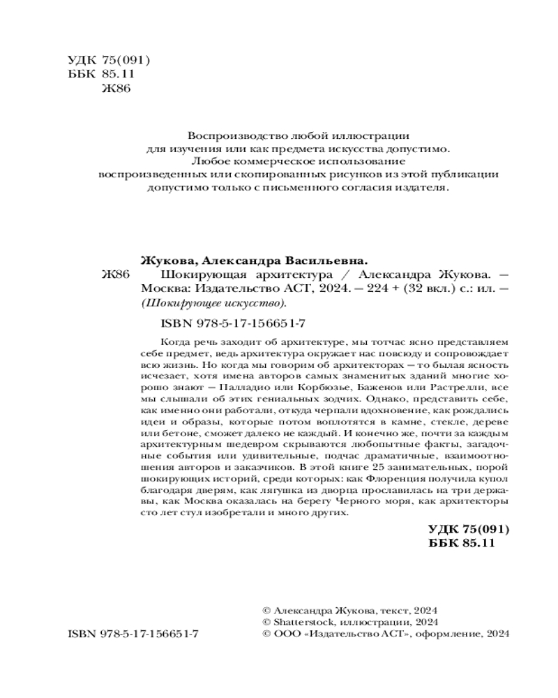 💳 Оплатить за товар можно при получении 🇰🇿 Есть бесплатная доставка по Казахстану от 1 дня 🎁 Копите бонусы с каждой покупки Серия: Шокирующее искусство Когда речь заходит об архитектуре, мы тотчас ясно представляем себе предмет, ведь архитектура окружает нас повсюду и сопровождает всю жизнь. Но когда заходит речь об архитекторах — то былая ясность исчезает, предмет разговора начинает скрываться в тумане, хотя имена авторов самых знаменитых зданий многие хорошо знают — Палладио или Корбюзье, Баженов или Растрелли, все мы слышали об этих гениальных зодчих. Однако, представить себе, как именно они работали, откуда черпали вдохновение, как рождались идеи и образы, которые потом воплотятся в камне, стекле, дереве или бетоне, сможет далеко не каждый. Получается такой любопытный парадокс — архитектура открыта и знакома всем, а ее создание — процесс загадочный, мало кому понятный, почти мистический. Соответственно, архитекторы представляются нам также людьми закрытыми, неприступными, которые, подобно жрецам, владеют тайными знаниями и умениями. |