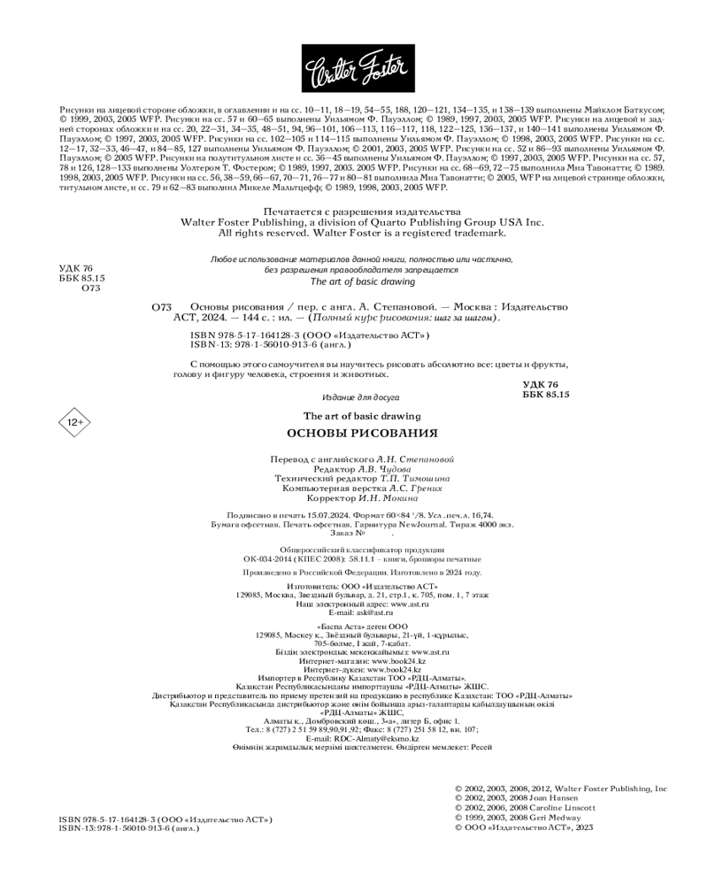 💳 Оплатить за товар можно при получении 🇰🇿 Есть бесплатная доставка по Казахстану от 1 дня 🎁 Копите бонусы с каждой покупки Серия: Полный курс рисования: шаг за шагом Искусство карандашного рисунка универсально — это и небольшой набросок предмета и сложная многофигурная композиция, с полным диапазоном тональных оттенков. Художники и преподаватели живописи, работы которых представлены в этой книге, создали свой собственный, особый подход к рисунку, отраженный в многочисленных универсальных уроках. С помощью пошаговых упражнений, вы освоите как отдельные детали пейзажа, натюрморта и портрета: деревья, облака, цветы и фрукты, отдельные черты лица и фигуру человека, животных, строения, так и научитесь рисовать сложные композиции. Следуя инструкциям и описаниям, представленным в этом самоучителе, вы обретете необходимое вам вдохновение. |