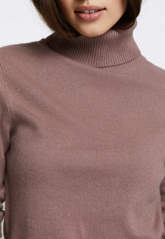 Беру уже вторую водолазку этого бренда со скидкой. Отличный состав, теплая, мягкая, комфортная. Цвет скорее "пыльной розы", не коричневый