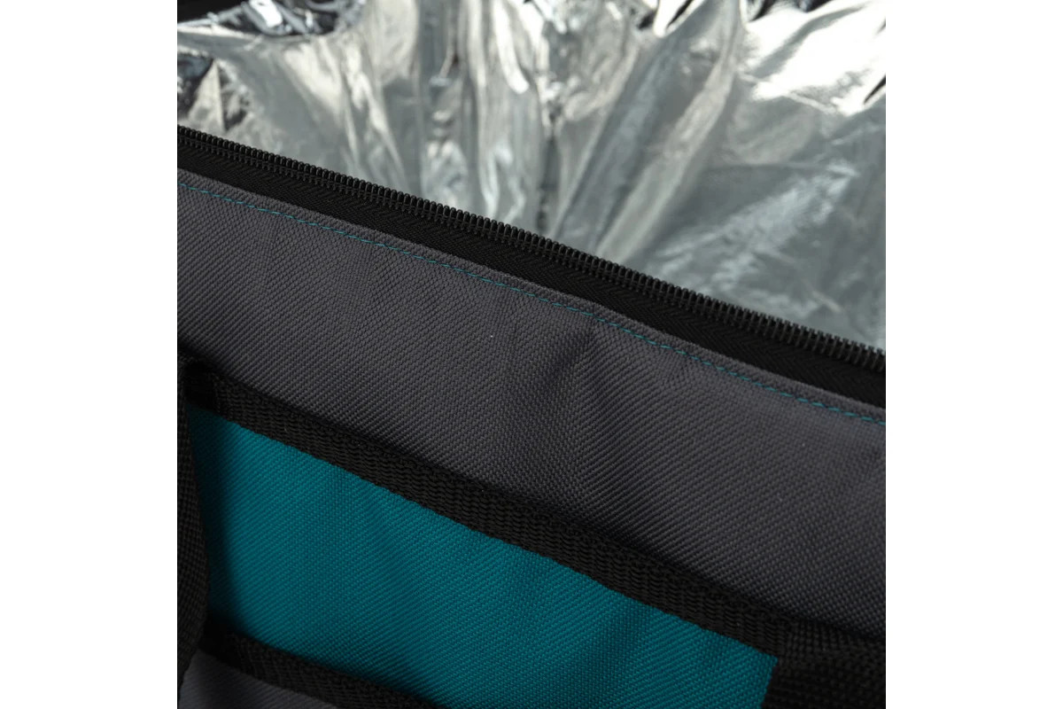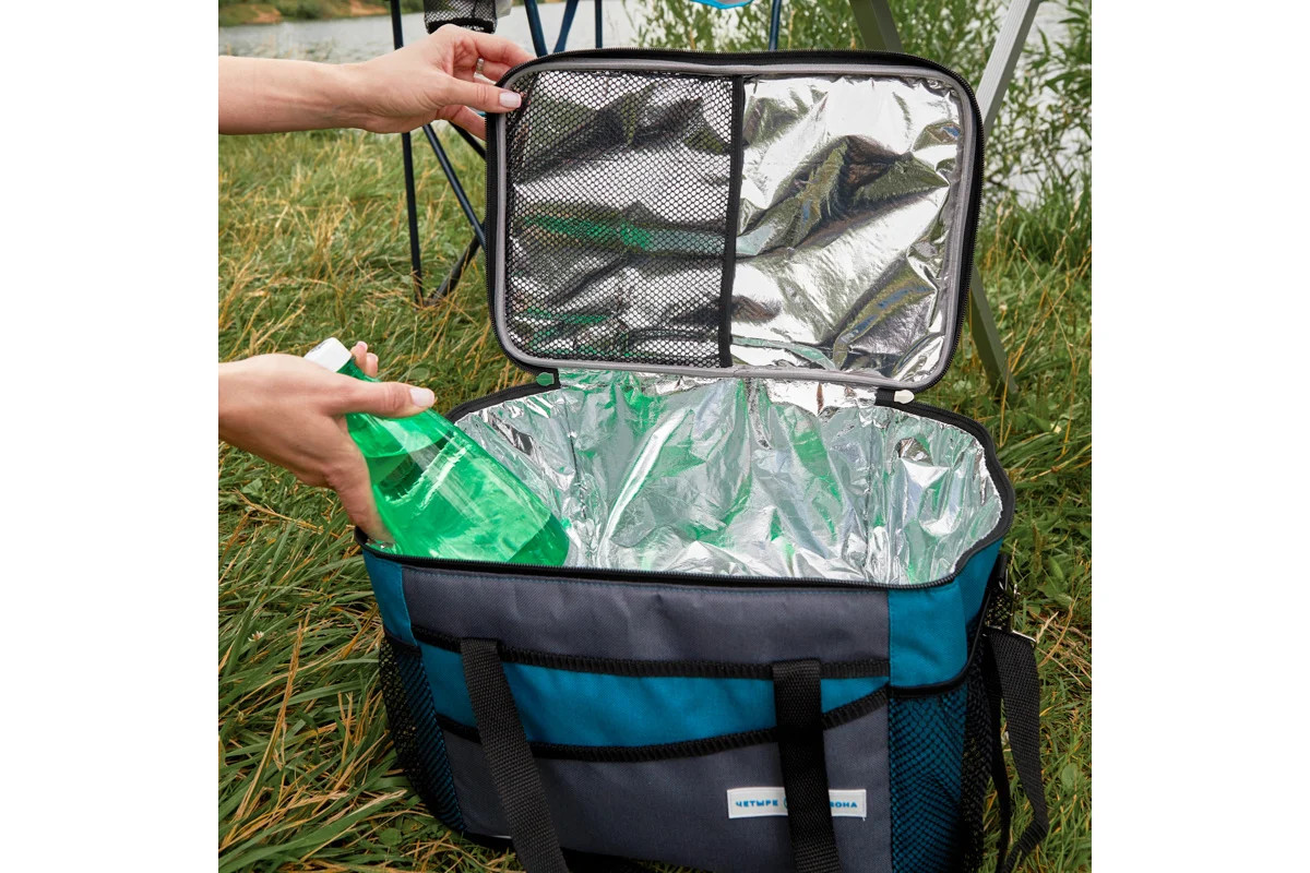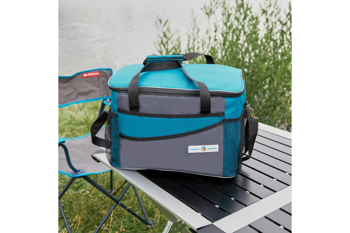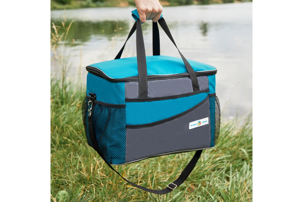 Термосумка — это дорожный аксессуар, сохраняющий температуру продуктов в течение длительного времени. Она изготовлена из прочной влагостойкой ткани оксфорд 600 с ПВХ снаружи и фольгированного материала с высокими теплоизоляционными свойствами изнутри. Толщина стенок в 8 мм и два слоя утепления способствуют длительному сохранению холода или тепла. Внутри есть специальный карман для аккумулятора холода. Сумка-холодильник оснащена прочным ремнём и удобными ручками. На задней стенке есть липучка. Три внешних кармана предоставляют дополнительное пространство для хранения различных мелочей.