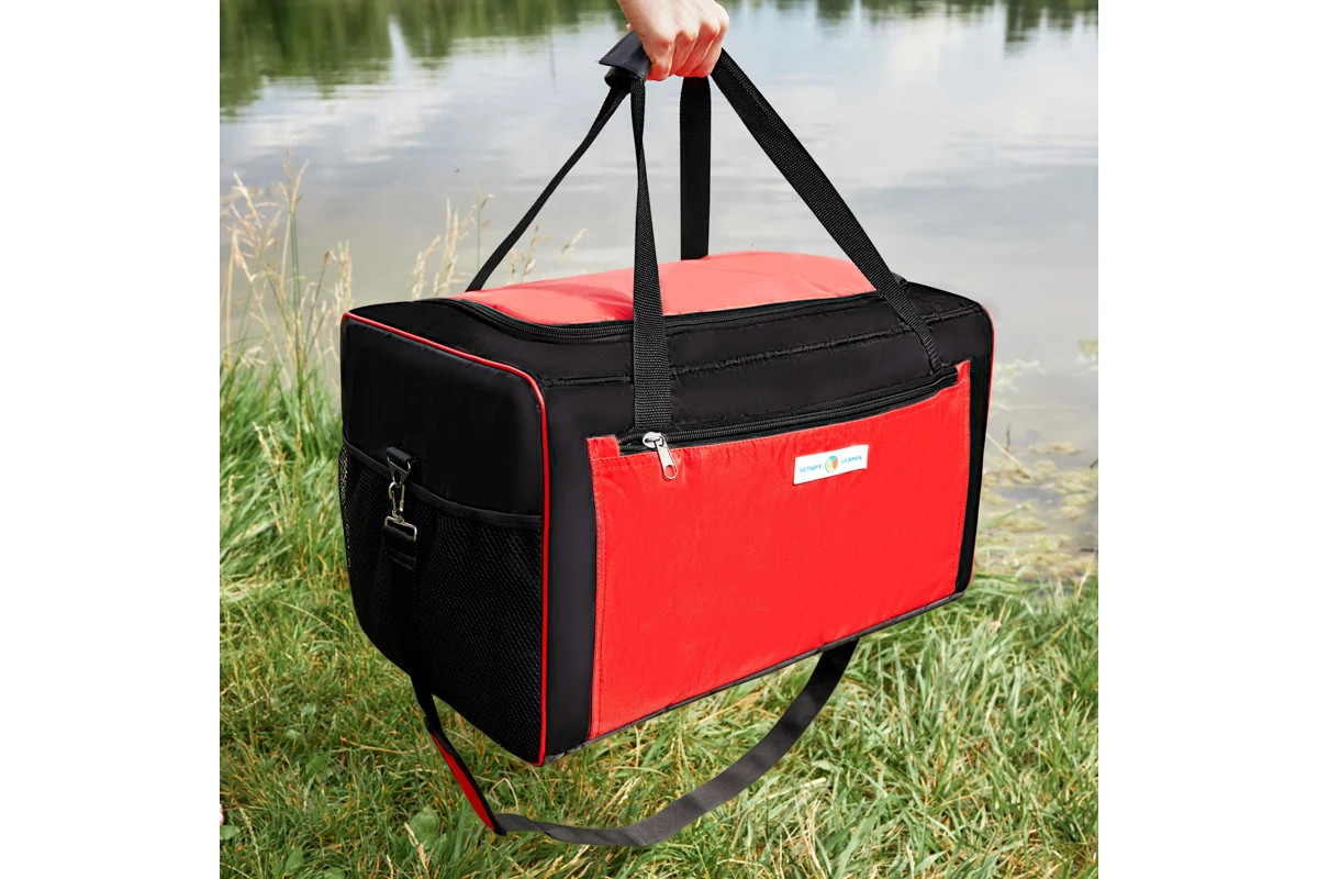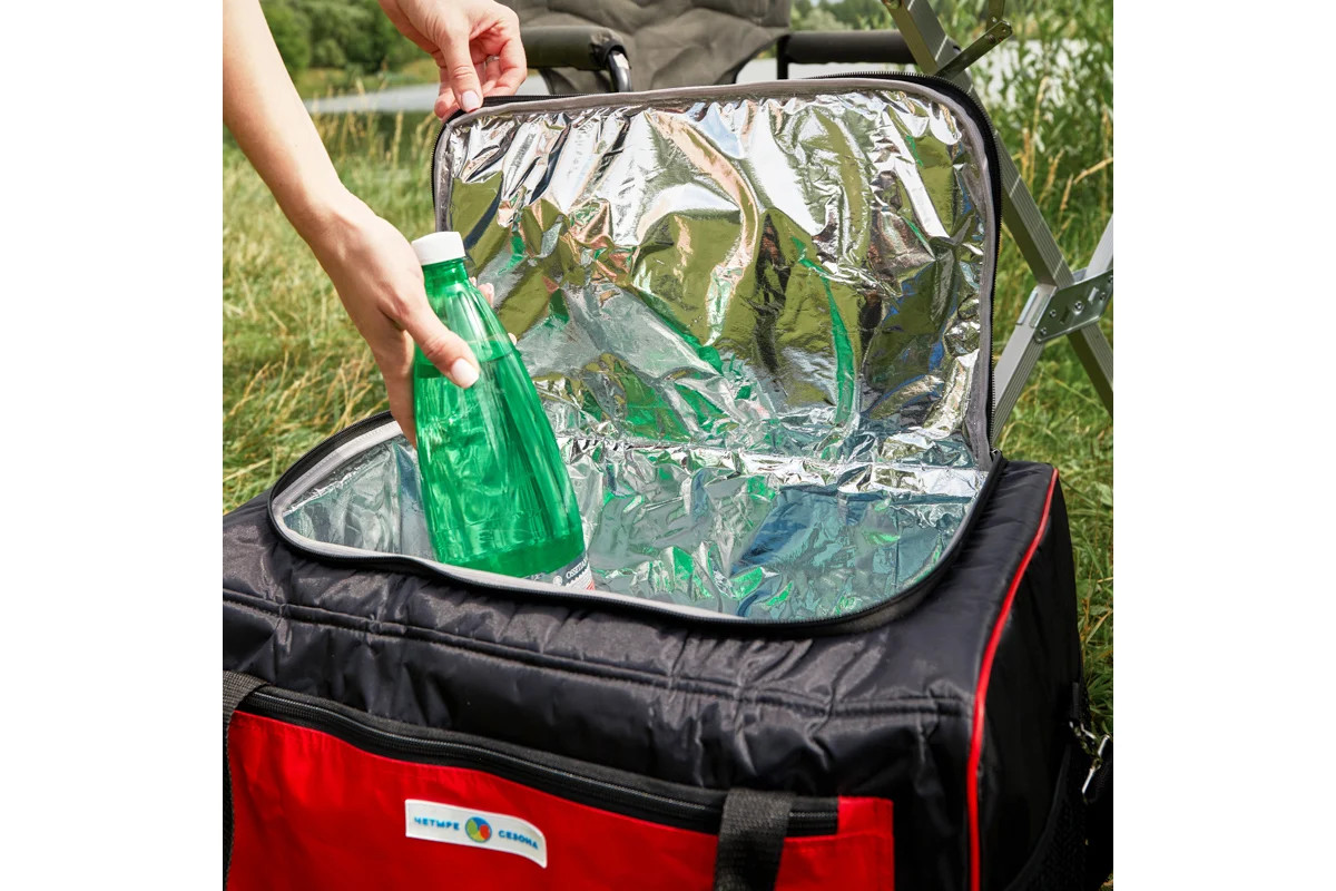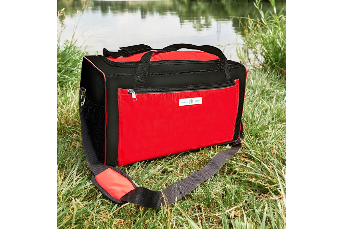 Термосумка — это дорожный аксессуар, сохраняющий температуру продуктов в течение длительного времени. Она изготовлена из прочной влагостойкой ткани оксфорд 420 с ПВХ снаружи и фольгированного материала с высокими теплоизоляционными свойствами изнутри. Толщина стенок в 10 мм и два слоя утепления способствуют длительному сохранению холода или тепла. Внутри есть специальный карман для аккумулятора холода. Сумка-холодильник оснащена прочным ремнём и удобными ручками. Три внешних кармана предоставляют дополнительное пространство для хранения различных мелочей. Изделие имеет жесткий каркас.