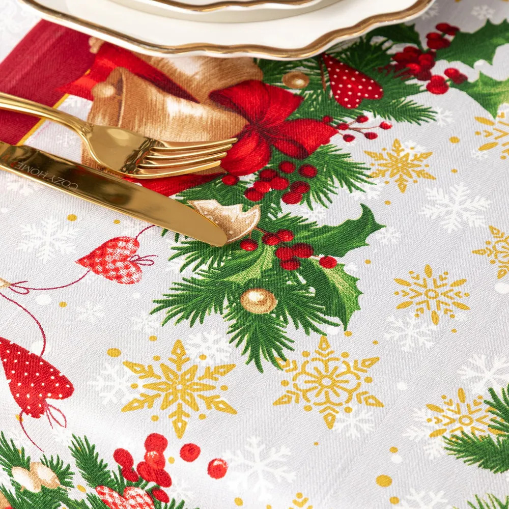 Подарочный набор скатертей «Mia Cara» станет идеальным украшением вашего праздничного стола, добавив уют и стиль в атмосферу вашего дома. В комплект входят две высококачественные скатерти: большая скатерть размером 145×180 см и дополнительная скатерть-дорожка размером 50×180 см. Оба изделия выполнены из прочного и легко очищаемого материала, который выдерживает многочисленные стирки, сохраняя свой первоначальный вид. Дорожка украшена элегантным дизайном «Морозная фантазия», который безупречно впишется в новогоднюю тематику, что делает их отличным выбором для праздничного стола.