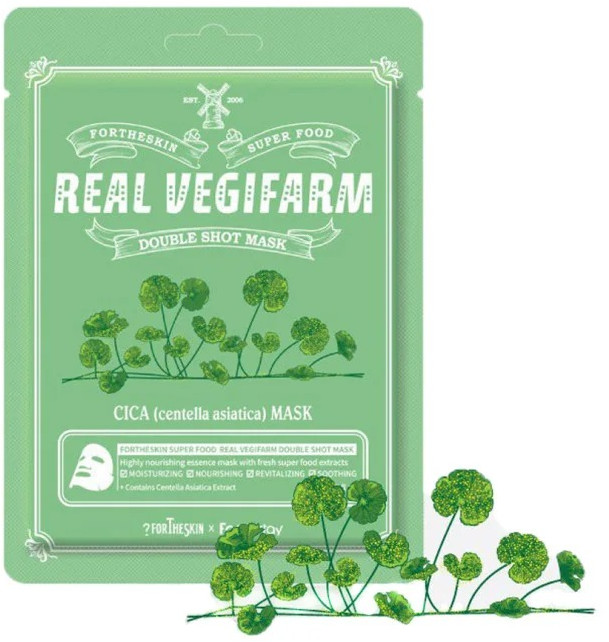 Fortheskin Маска для лица тканевая «Super Food Real Vegifarm Double Shot Mask-Cica»