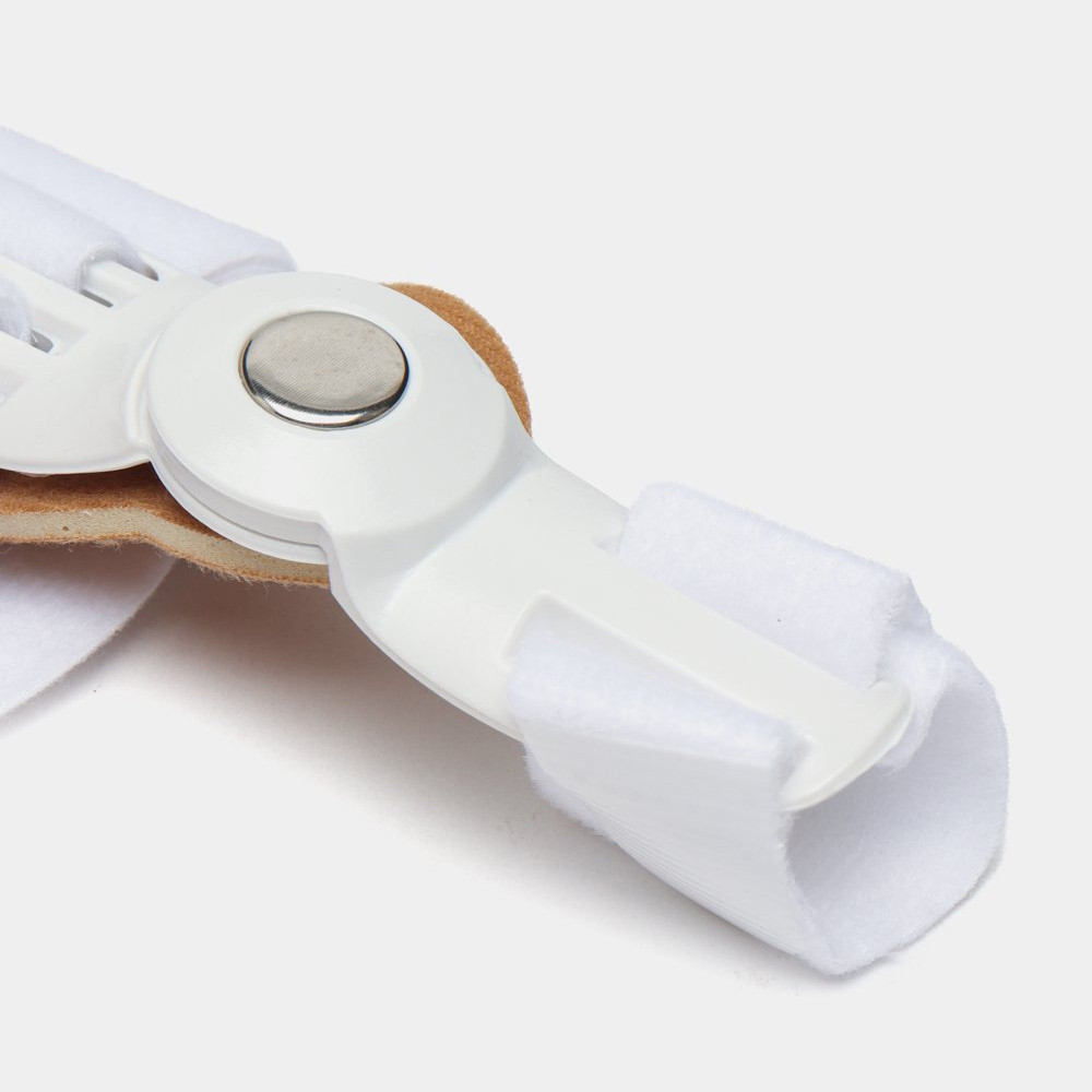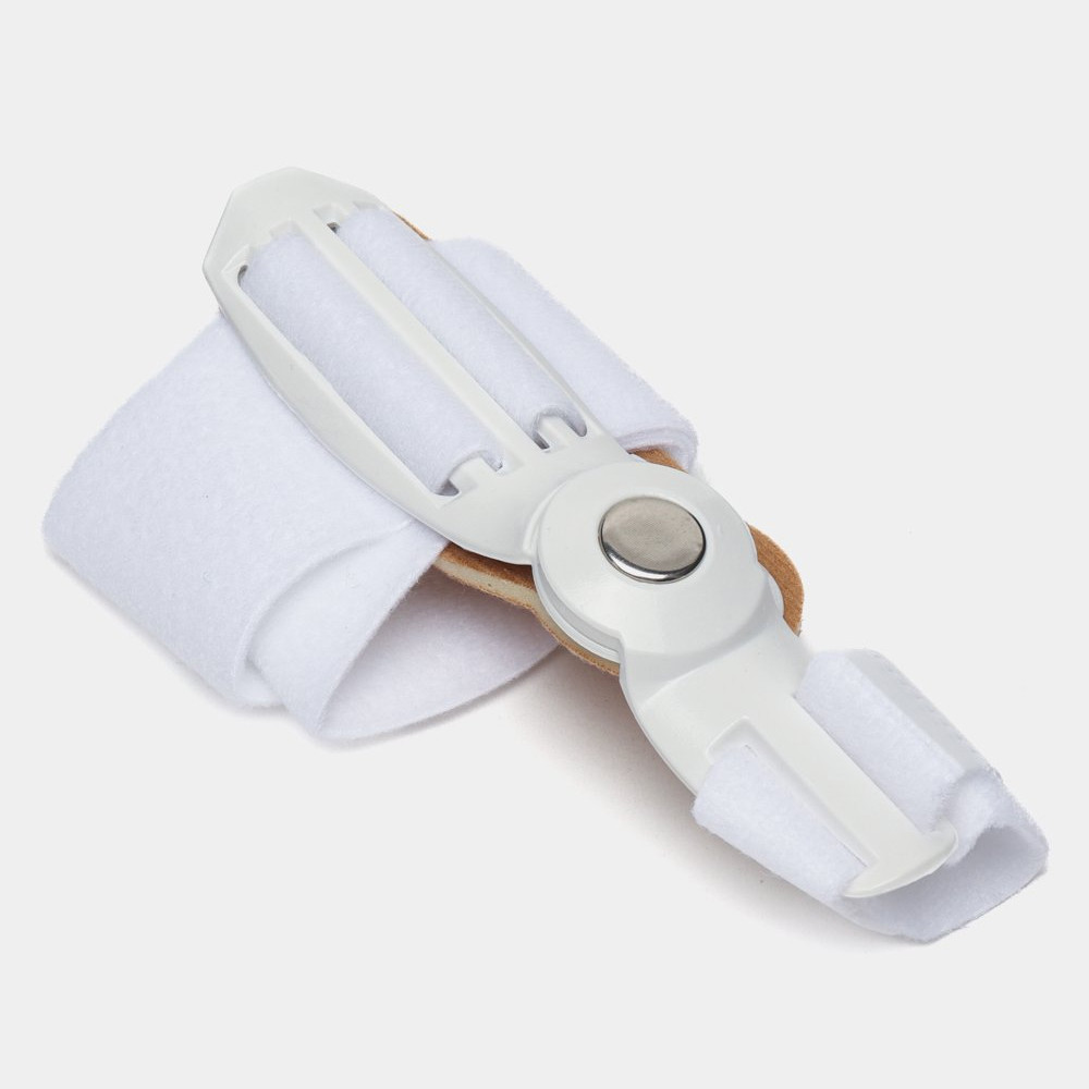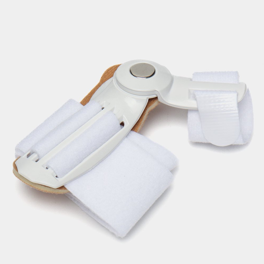 Вальгусная шарнирная шина — уникальное ортопедическое приспособление для всех, кто страдает деформацией большого пальца стопы (Hallux valgus), и у кого наблюдается «косточка» (шишка) на ноге. Эта шина помогает уменьшить «косточку» на ноге. Она также будет полезна при воспалительных заболеваниях сустава большого пальца стопы, а также при болях в области «шишки» на ноге. В шине можно не только спать, но и ходить босиком, в тапочках или в свободной обуви. Благодаря шарниру она повторяет изгиб сустава большого пальца и не травмирует его при ходьбе. Шина фиксируется при помощи регулируемых лент-липучек, поэтому вы сможете менять угол отклонения большого пальца: начать можно с маленького усилия, далее — постепенно увеличивать. Мягкая накладка закрывает «косточку» и бережет ее от трения и давления. Изделие состоит из гипоаллергенных материалов, поэтому не вызывает раздражения и сыпи. Размер шины — универсальный, подойдет для ноги любого размера. Подходит и для правой, и для левой ноги.