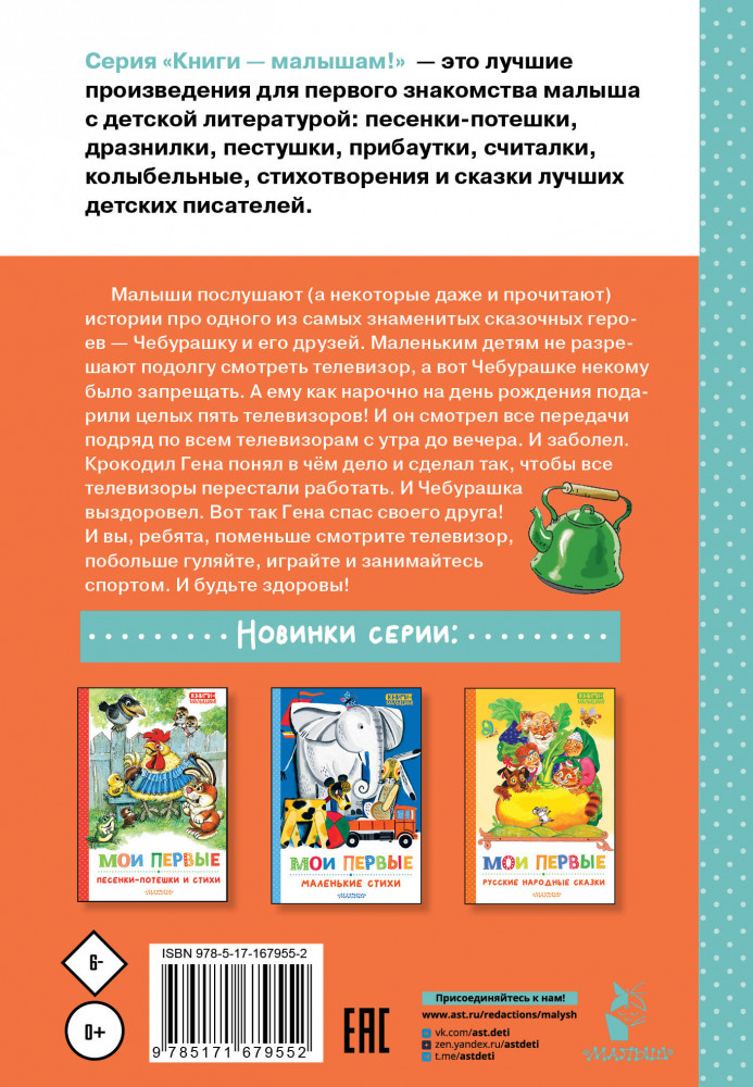 💳 Оплатить за товар можно при получении 🇰🇿 Есть бесплатная доставка по Казахстану от 1 дня 🎁 Копите бонусы с каждой покупки Серия: Книги — малышам! Эдуард Николаевич Успенский — известный детский писатель, лауреат премии им. К. Чуковского «За выдающиеся творческие достижения в отечественной детской литературе». Его книги любят ребята и в нашей стране, и за рубежом. Э. Успенский писал так, что только дети с их непосредственным и позитивным восприятием мира могли понять и оценить разговоры, поступки, поведение сказочных героев. В состав нашей книги «Мои первые сказки про Чебурашку» серии «Книга — малышам!» вошли сказочные истории: «В гостях у Чебурашки», «Летающий Гена», «Проказы Шапокляк» и другие. |