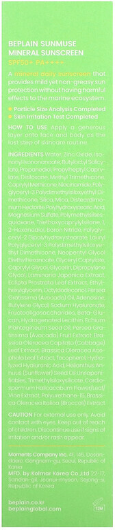 Beplain Крем для лица солнцезащитный «Sunmuse Mineral Sunscreen» SPF 50+ PA+
