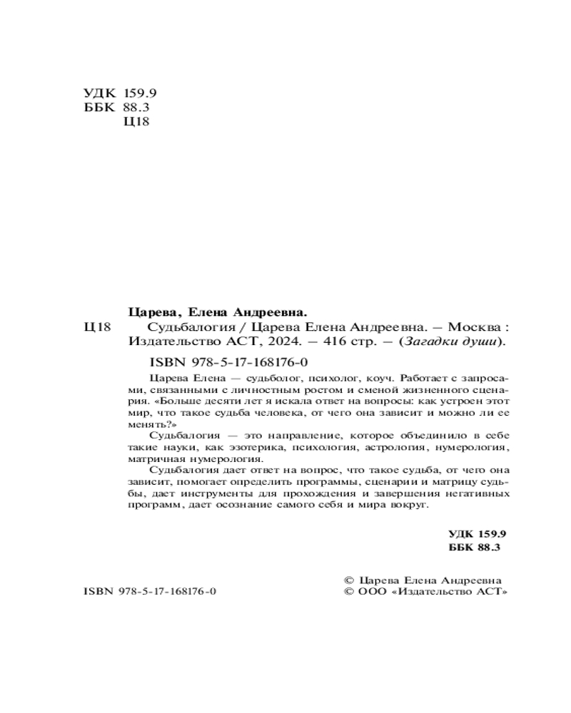 💳 Оплатить за товар можно при получении 🇰🇿 Есть бесплатная доставка по Казахстану от 1 дня 🎁 Копите бонусы с каждой покупки Серия: Загадки души Царева Елена — судьболог, психолог, коуч. Работает с запросами, связанными с личностным ростом и сменой жизненного сценария. «Больше десяти лет я искала ответ на вопросы: как устроен этот мир, что такое судьба человека, от чего она зависит и можно ли ее менять?» Судьбалогия — это направление, которое объединило в себе такие науки, как эзотерика, психология, астрология, нумерология, матричная нумерология. Судьбалогия дает ответ на вопрос, что такое судьба, от чего она зависит, помогает определить программы, сценарии и матрицу судьбы, дает инструменты для прохождения и завершения негативных программ, дает осознание самого себя и мира вокруг. |