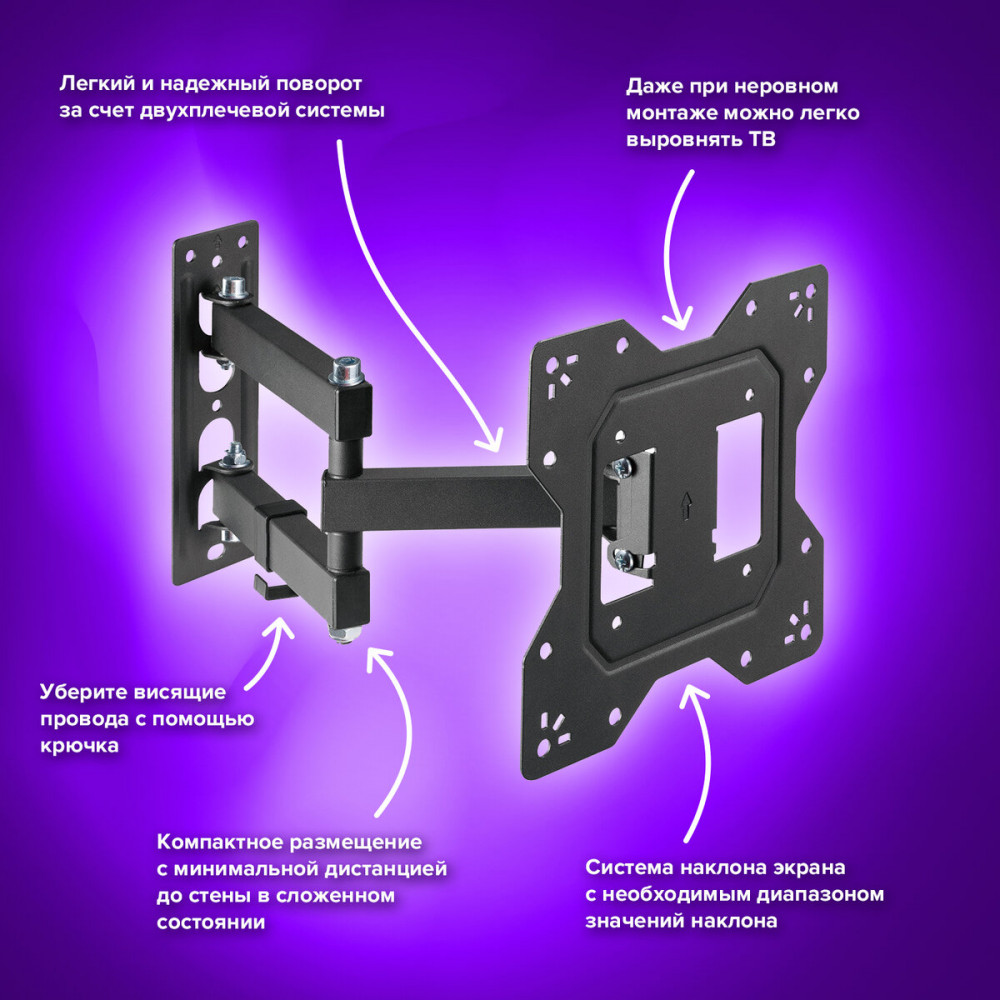 💳 Оплатить за товар можно при получении 🇰🇿 Есть бесплатная доставка по Казахстану от 1 дня 🎁 Копите бонусы с каждой покупки Кронштейн для телевизора представляет собой металлическую конструкцию, которая используется для подвешивания техники. Такие крепления позволяют регулировать расположение устройства, делая его просмотр удобным для каждого из смотрящих. Кронштейн-крепление для ТВ Sonnen оснащен универсальным креплением международного стандарта VESA, которое надежно удержит как экран ТВ, так и монитор компьютера диаметром 23 — 43«. Конструкция кронштейна выдерживает нагрузку до 30 кг. За счет широкого диапазона крепежных отверстий и крепкой надежной конструкции, изделие подходит для большинства моделей телевизоров, поддерживающих стандарт крепления VESA. |