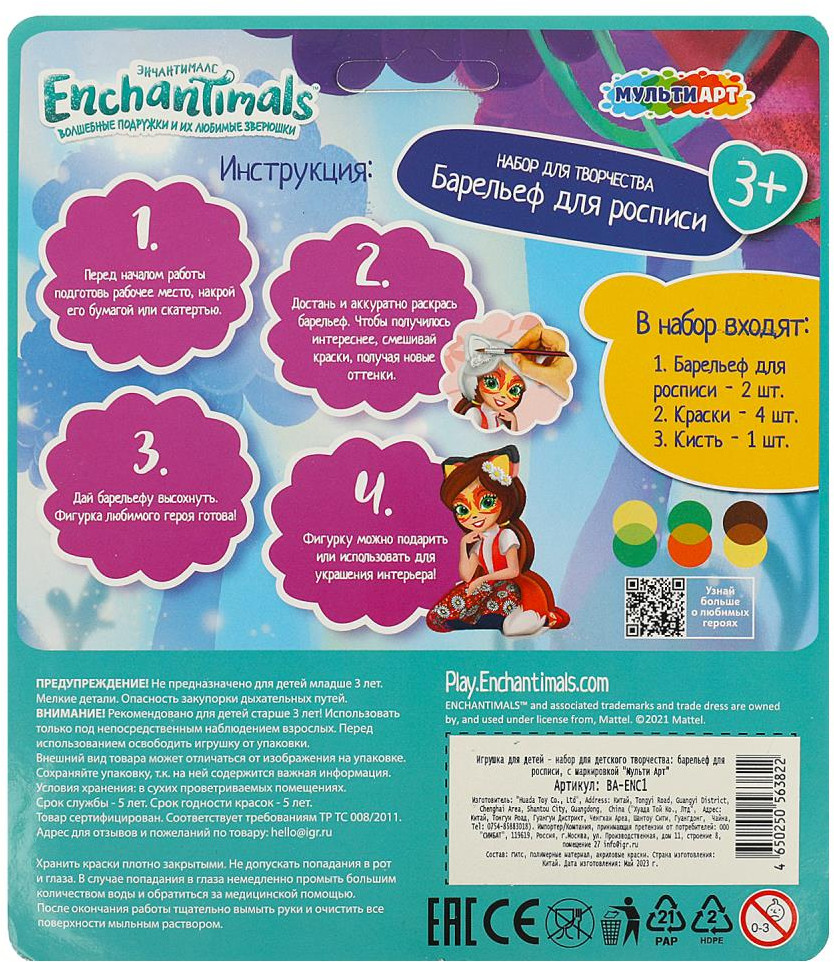 Набор для творчества — барельеф для росписи «Enchantimals. Фелисити Лис и Флик» ТМ «Мульти Арт» непременно понравится маленьким поклонникам мультсериала про волшебных подружек и их питомцев.