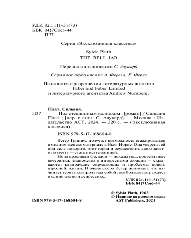 💳 Оплатить за товар можно при получении 🇰🇿 Есть бесплатная доставка по Казахстану от 1 дня 🎁 Копите бонусы с каждой покупки Серия: Эксклюзивная классика (Лучшее) Эстер Гринвуд получает возможность стажироваться в модном женском журнале в Нью-Йорке. Она уверена: ей под силу покорить этот город и осуществить свою заветную мечту — стать писательницей. Но за красивым фасадом — показы мод, коктейльные вечеринки, знакомства с интересными людьми — скрываются равнодушие окружающих и проблемы новой, взрослой, жизни. И очень скоро Эстер понимает, что начинает терять контроль над собой, все больше погружаясь в одиночество и депрессию... |