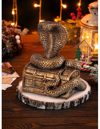 Копилка Elan Gallery «Кобра на сундуке» размером 17.5 × 12 × 21 см изготовлена из гипса. Статуэтка для накопления денежных средств станет украшением любого интерьера. Это традиционная копилка, которую нужно разбивать, чтобы достать деньги. Можно использовать как детскую копилку, чтобы помочь малышу развивать терпение и бережное отношение к средствам.