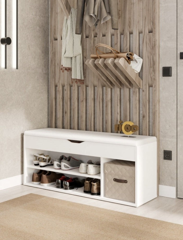 Storehouse Тумба для обувиВ данный момент этот товар отсутствует в продаже. Возможно, у нас найдется аналогичный или похожий товар здесь. Тумба для обуви — это стильный и функциональный элемент мебели, идеально подходящий для организации вашей прихожей или коридора. Выполненная в современном дизайне, эта тумба сочетает в себе элегантность и практичность, добавляя уют и порядок в ваше пространство. Компактные форма и размеры позволяют поставить обувной шкаф не только в прихожей, но и в детской комнате, либо в узком коридоре. Мягкое и прочное сиденье из эко-кожи. Товар поставляется в разобранном виде. |