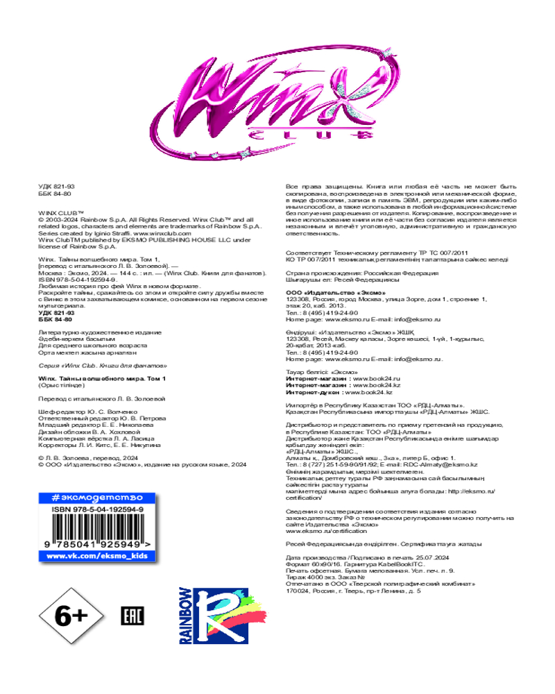 💳 Оплатить за товар можно при получении 🇰🇿 Есть бесплатная доставка по Казахстану от 1 дня 🎁 Копите бонусы с каждой покупки Серия: Winx Club. Книги для фанатов Любимая история про фей Winx в новом формате. Раскройте тайны, сражайтесь со злом и откройте силу дружбы вместе с Винкс в этом захватывающем комиксе, основанном на первом сезоне мультсериала. |