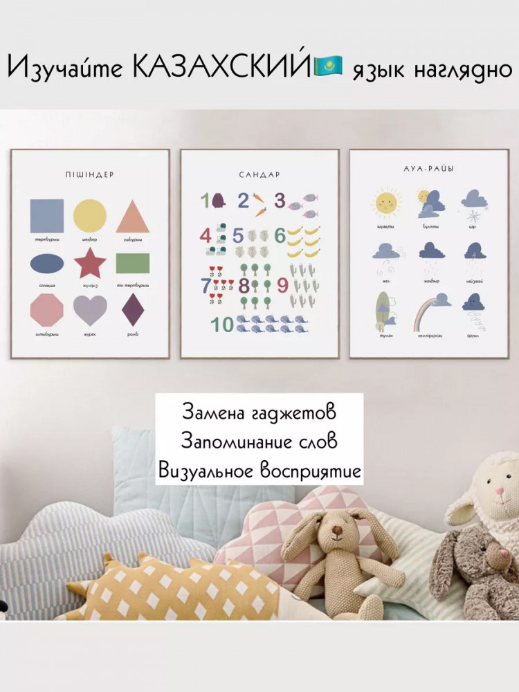 BALAMOUR Набор из 10 постеров на казахском языке для детей формат А4 без ламинирования 1-3 г.+65