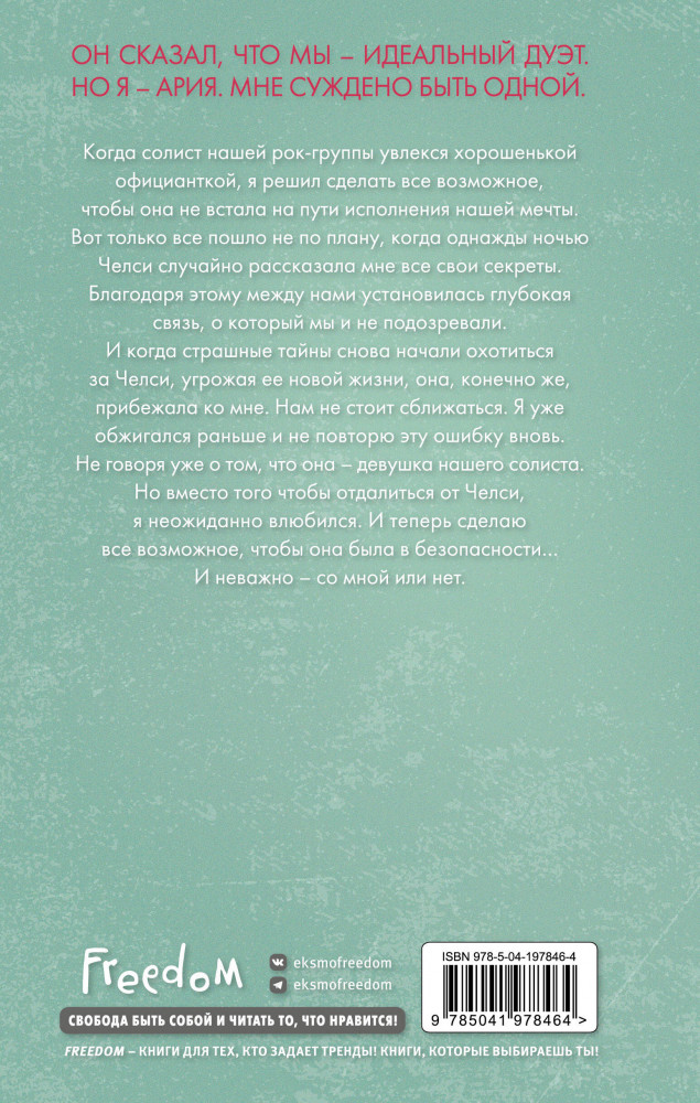 💳 Оплатить за товар можно при получении 🇰🇿 Есть бесплатная доставка по Казахстану от 1 дня 🎁 Копите бонусы с каждой покупки Серия: Freedom. Романтическая проза Дженнифер Хартманн Когда солист нашей рок-группы увлекся хорошенькой официанткой, я решил сделать все возможное, чтобы она не встала на пути исполнения нашей мечты. Вот только все пошло не по плану, когда однажды ночью Челси случайно рассказала мне все свои секреты. Благодаря этому между нами установилась глубокая связь, о который мы и не подозревали. И когда страшные тайны снова начали охотиться за Челси, угрожая ее новой жизни, она, конечно же, прибежала ко мне. Нам не стоит сближаться. Я уже обжигался раньше и не повторю эту ошибку вновь. Не говоря уже о том, что она — девушка нашего солиста. Но вместо того, чтобы отдалиться от Челси, я неожиданно влюбился. И теперь сделаю все возможное, чтобы она была в безопасности... И неважно — со мной или нет. |