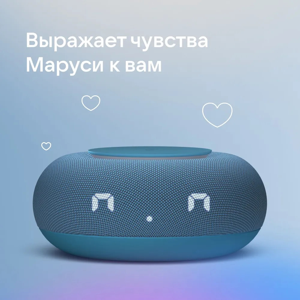 Умная колонка VK Капсула Мини выполнена в корпусе синего цвета с тканевой отделкой и дизайном от студии Layer. У нее есть ночник и дисплей, на котором отображаются время, погода и эмоции Маруси. С помощью голосового ассистента можно получать информацию на интересующие вопросы, слушать музыку, совершать звонки, создавать сценарии управления устройствами умного дома. Для детей у Маруси много сказок, игр, обучающего и развивающего материала. Бесплатно без подписки предлагаются более 800 аудиокниг, 7700 подкастов, 250 радиостанций и 50 игр.