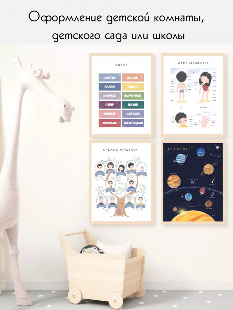 BALAMOUR Набор из 10 постеров на казахском языке для детей формат А3 с ламинированием 3-5 л.+180