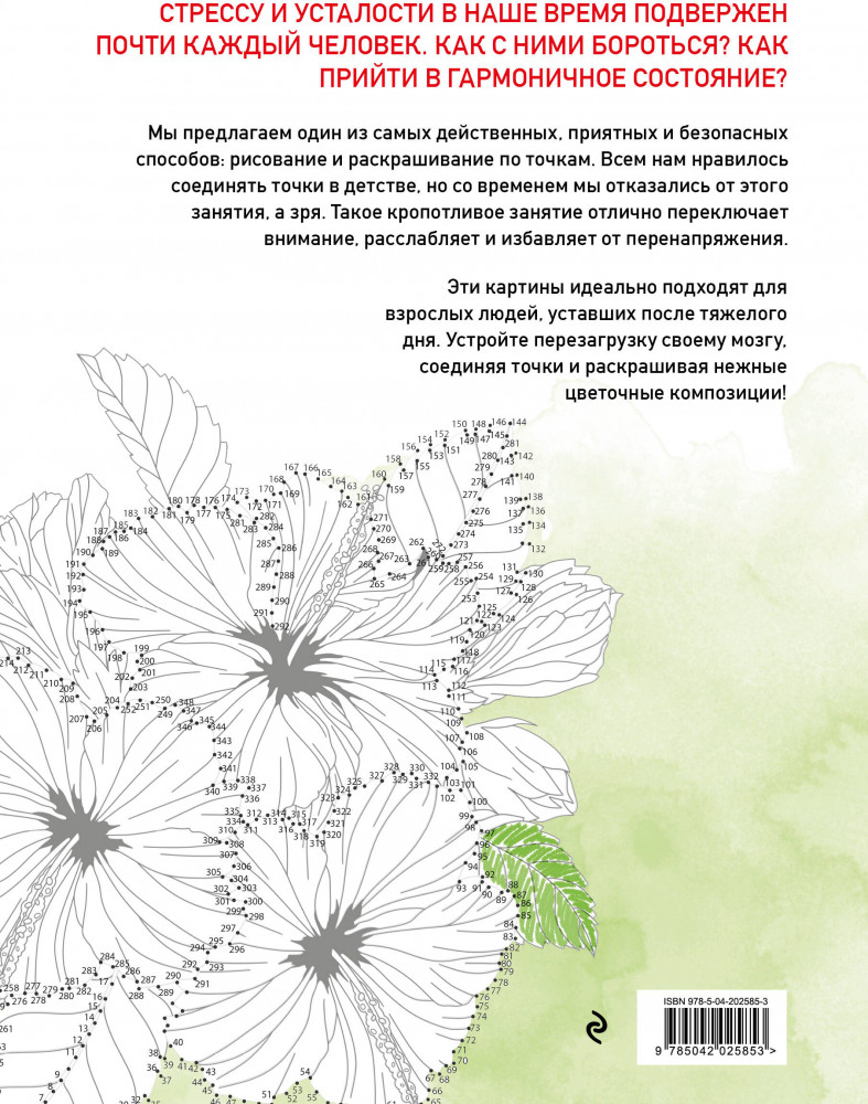 💳 Оплатить за товар можно при получении 🇰🇿 Есть бесплатная доставка по Казахстану от 1 дня 🎁 Копите бонусы с каждой покупки Серия: Арт-терапия. От точки к точке От точки к точке — наблюдайте, как под вашими руками постепенно возникает цветочная композиция. Позвольте себе отдохнуть после трудного дня, соединяя точки. Многие люди по всему миру уже оценили терапевтическое действие подобных книг. Попробуйте и вы! После первой же картины вы почувствуете себя полностью отдохнувшим человеком, готовым к новым свершениям. |