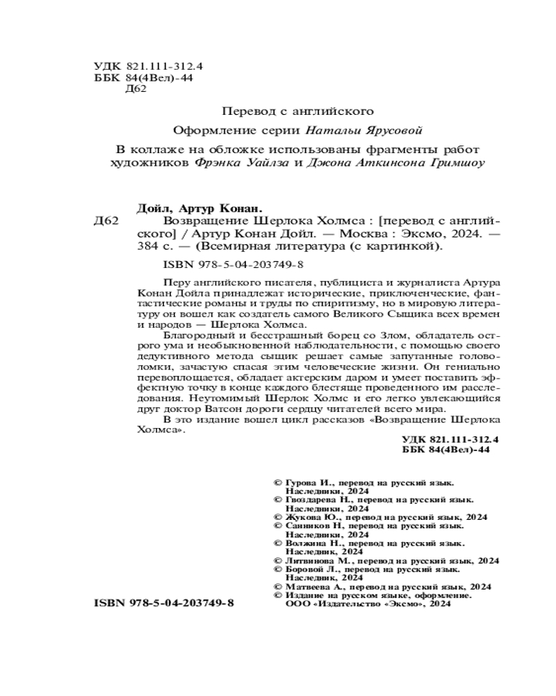 💳 Оплатить за товар можно при получении 🇰🇿 Есть бесплатная доставка по Казахстану от 1 дня 🎁 Копите бонусы с каждой покупки Серия: Всемирная литература (новое оформление) Перу английского писателя, публициста и журналиста Артура Конан Дойла принадлежат исторические, приключенческие, фантастические романы и труды по спиритизму, но в мировую литературу он вошел как создатель самого Великого Сыщика всех времен и народов — Шерлока Холмса. |
