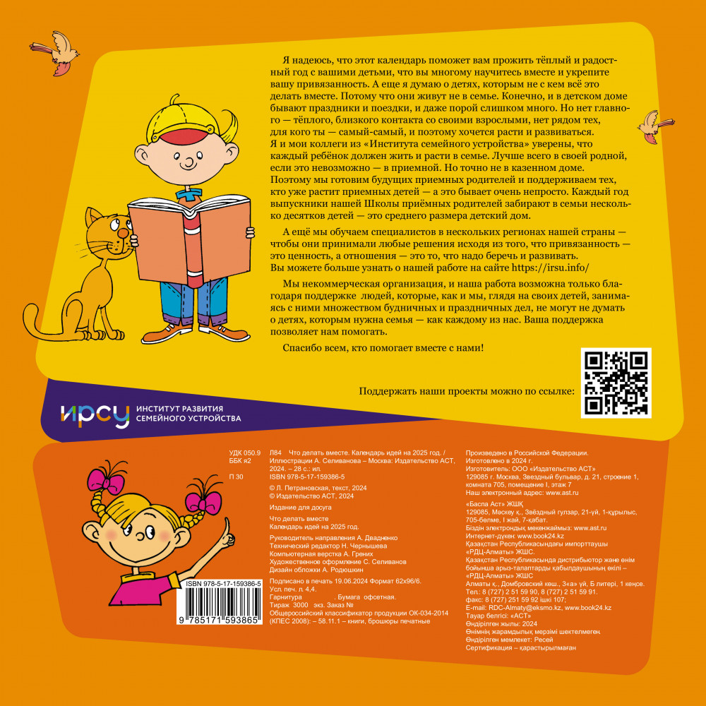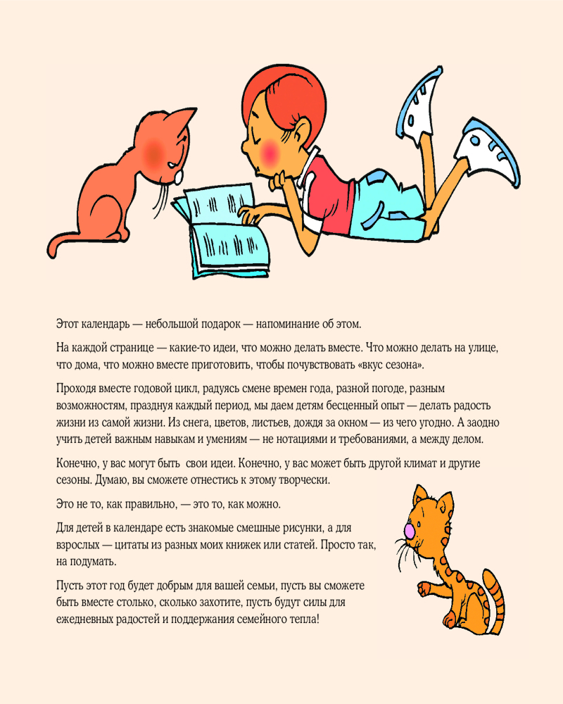 Календарь детский на 2025 год «Что делать вместе»Людмила Владимировна Петрановская В данный момент этот товар отсутствует в продаже. Возможно, у нас найдется аналогичный или похожий товар здесь. Серия: Календарь настенный на 2025 год Этот календарь покажет вам, как создать «привязанность ребенка», надолжго установить с ним теплые и добрые отношения. На каждой странице — идеи того, что можно делать вместе на улице или дома, что можно приготовить, чтобы почувствовать «вкус сезона». Проходя вместе годовой цикл, радуясь смене времен года, разной погоде, разным возможностям, мы даем детям бесценный опыт — создавать радость жизни из самой жизни: из снега, цветов, листьев, дождя за окном — из чего угодно. А заодно учим детей важным навыкам и умениям — не нотациями и требованиями, а между делом. Конечно, у вас могут быть свои идеи. Поэтому календарь рассказывает о том, как можно, а не о том, как правильно. |
