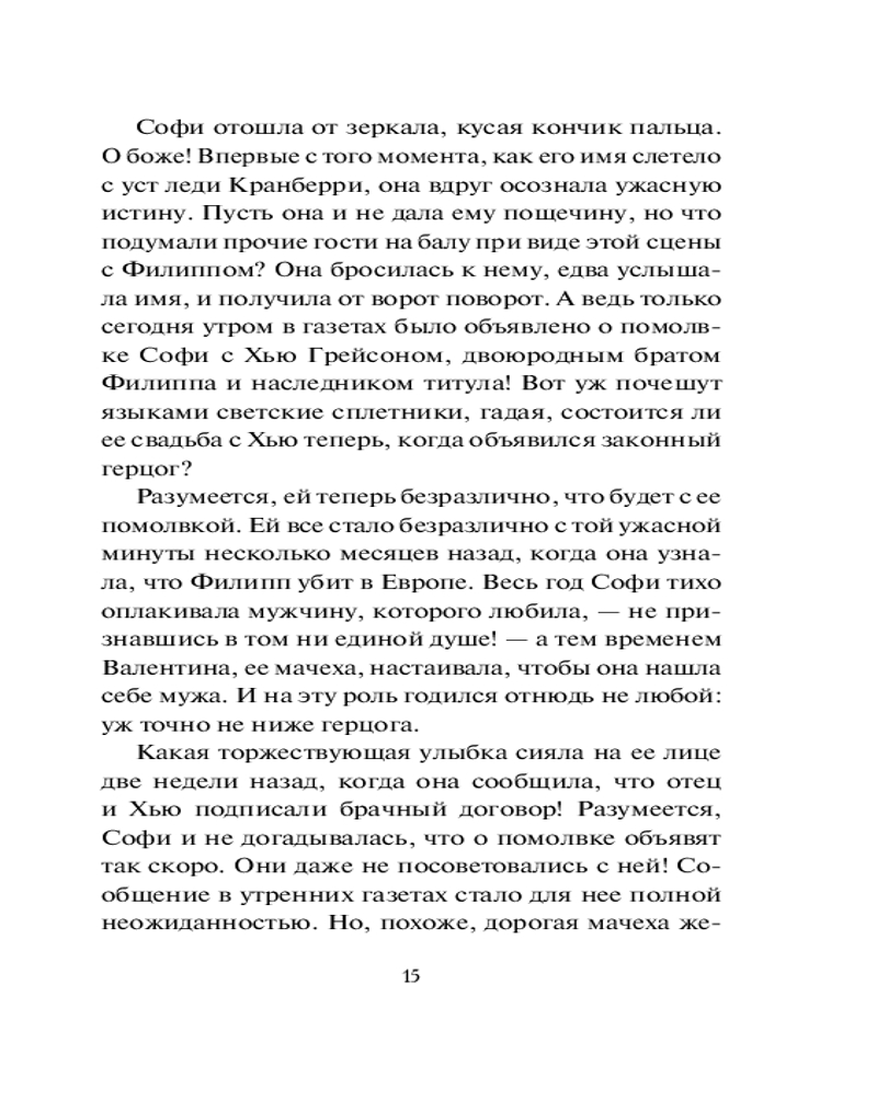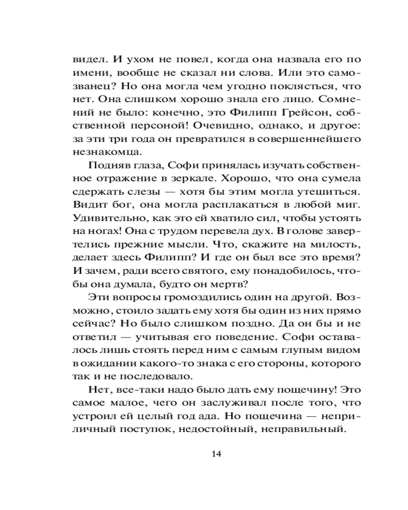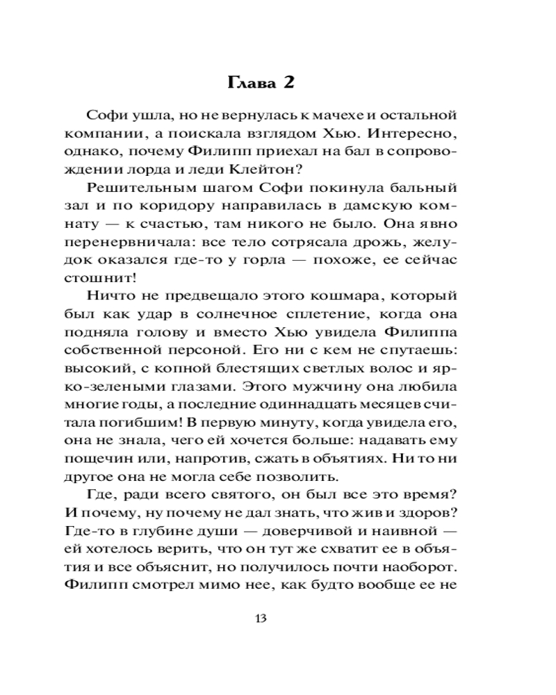 💳 Оплатить за товар можно при получении 🇰🇿 Есть бесплатная доставка по Казахстану от 1 дня 🎁 Копите бонусы с каждой покупки Серия: Шарм Единственный, кого когда-нибудь любила София Пейтон, — Филипп Грейсон, — геройски пал на поле брани. Теперь девушке уже все равно, за кого выйти замуж, — почему бы, если семья настаивает, и не за кузена погибшего, унаследовавшего титул герцога Харлоу? Однако порой чудеса случаются — и однажды в Лондон возвращается Филипп. Ожесточенный, решительный, жаждущий мести и твердо уверенный, что та, ради которой он заставил себя выжить, его хладнокровно предала... |