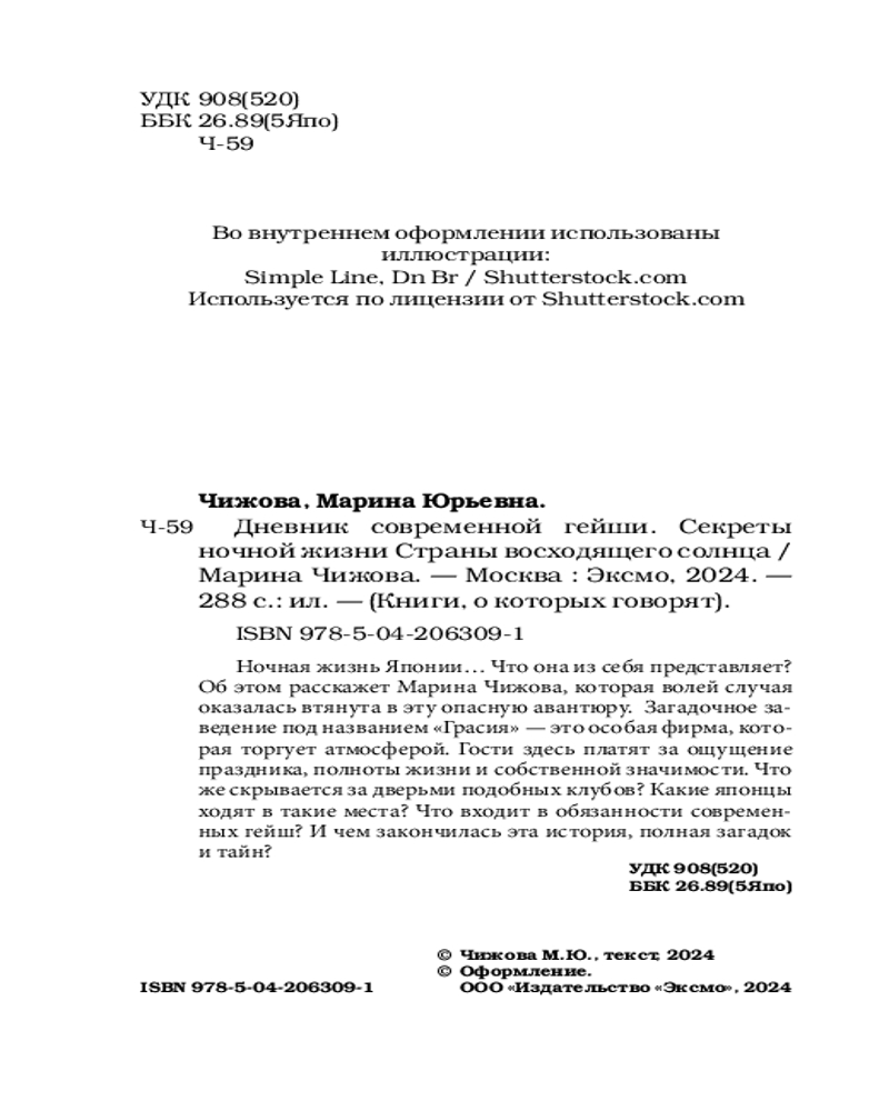 💳 Оплатить за товар можно при получении 🇰🇿 Есть бесплатная доставка по Казахстану от 1 дня 🎁 Копите бонусы с каждой покупки Серия: Книги, о которых говорят Ночная жизнь Японии... Что она из себя представляет? Об этом расскажет Марина Чижова, которая волей случая оказалась втянута в эту опасную авантюру. Загадочное заведение под названием «Грасия» — это особая фирма, которая торгует атмосферой. Гости здесь платят за ощущение праздника, полноты жизни и собственной значимости. Что же скрывается за дверьми подобных клубов? Какие японцы ходят в такие места? Что входит в обязанности современных гейш? И чем закончилась эта история, полная загадок и тайн? |