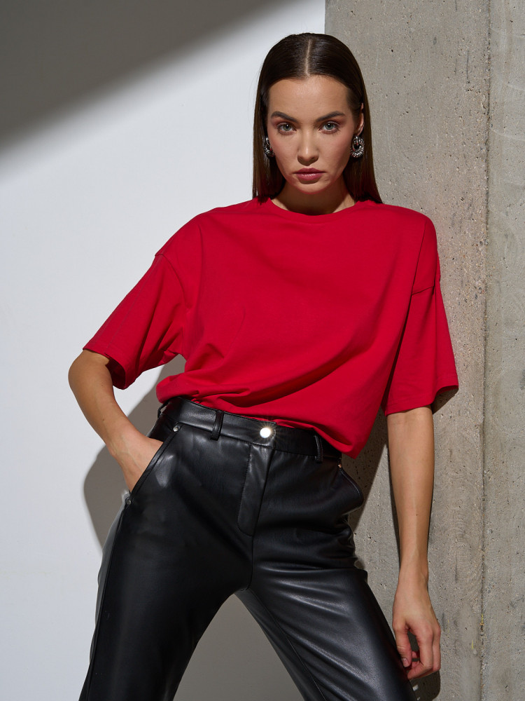 Отличная базовая футболка. Не короткая и не длинная - то что нужно. Оверсайз можно на размер меньше взять
