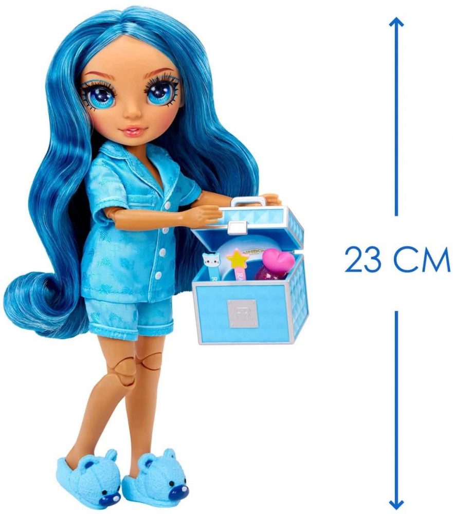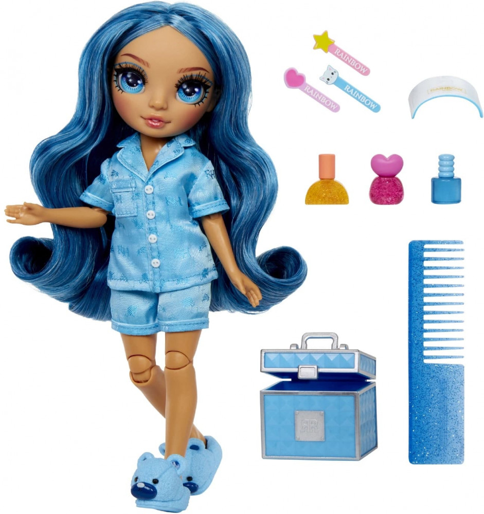 Rainbow High Кукла с аксессуарами «Скайлер голубая»В данный момент этот товар отсутствует в продаже. Возможно, у нас найдется аналогичный или похожий товар здесь. Познакомься с юной версией Скайлер в ее любимом пижамном наряде. Скайлер любит маникюр, поэтому на пижамную вечеринку она взяла синий чемоданчик с лаками для ногтей, пилочками и ультрафиолетовой лампой для маникюра. |