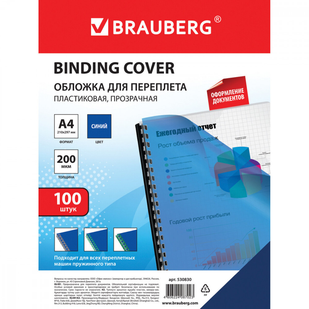 Brauberg Обложки пластиковые для переплета
