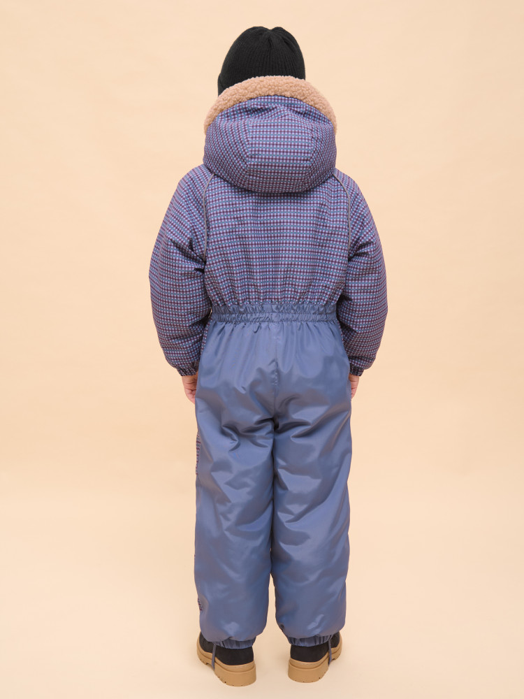 Комбинезон зимний детский из мембранной ткани. Модель свободного объёма с рукавами кроя реглан подарит ребёнку комфорт и не будет стеснять его движений. На внешнюю поверхность материала нанесена водоотталкивающая пропитка (DWR), она задерживает грязь и влагу снаружи — ребёнок не промокнет. Также есть дополнительная пропитка на внутренней стороне ткани. Капюшон двухшовный, что обеспечивает анатомически правильную форму и комфортную посадку по голове. Капюшон не отстегивается, предусмотрена регулировка объема эластичными шнурами с пластиковыми стопперами. Центральная застёжка на тракторную молнию с двумя пуллерами. Тканевый стоппер защищает подбородок от зажима молнией. Фиксирующая строчка предохраняет планку от «заедания» в процессе застёгивания. Комбинезон тёплый — дополнительно, для защиты от ветра и холода, центральная молния закрыта ветрозащитной планкой на кнопках и липучках (велкро). Спинка по талии присборена на внутреннюю резинку — комбинезон для мальчика безупречно садится по фигуре и не выглядит мешковато. Внутри комбинезона эластичные принтованные лямки — есть возможность снимать только верхнюю часть в помещении. Карманы с боковым входом закрываются на водонепроницаемую молнию со скрытыми звеньями — содержимое карманов не промокнет.