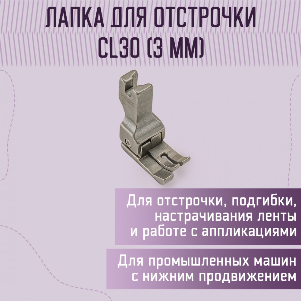 Yoke Лапка для отстрочки CL30 (3 мм)В данный момент этот товар отсутствует в продаже. Возможно, у нас найдется аналогичный или похожий товар здесь. CL 30 - это лапка для отстрочки, отделочной строчки на 3 мм от края для промышленных машин. Лапка CL30 левосторонняя. Размер определяется от центра иглы до подпружиненной части. Применяется для работы с разными видами материалов: кожей, нубуком, трикотажными тканями, замшей, синтетической пленкой и пр. для прокладывании строчки необходимой величины и длины, а также для подгибки, потайных и краеобметочных швов, зигзагов, при настрачивания бисера, пайеток, резинки, канта, бусин, лент; при работе с различными декоративными элементами: аппликациями, молниями, пуговицами. На лапке установлен ограничитель, в виде подпружиненного бортика (левый). Расстояние иглы до подпружиненной части лапки 3 мм. Ширина лапки 13 мм. |