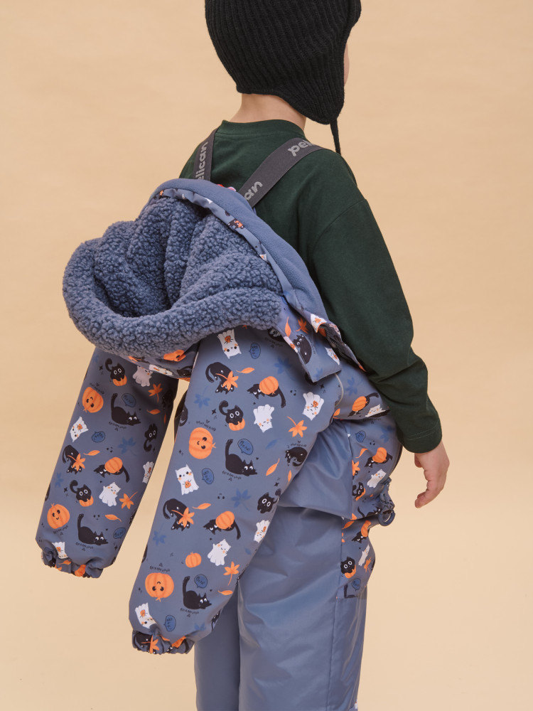 Комбинезон зимний детский из мембранной ткани. Подходит и для мальчиков, и для девочек. Модель свободного объёма с рукавами кроя реглан подарит ребёнку комфорт и не будет стеснять его движений. На внешнюю поверхность материала нанесена водоотталкивающая пропитка (DWR), она задерживает грязь и влагу снаружи — ребёнок не промокнет от снега, а комбинезон легко отстирается. Также есть дополнительная пропитка на внутренней стороне ткани — для более надёжной защиты от промокания. Капюшон двухшовный, что обеспечивает анатомически правильную форму и комфортную посадку по голове. Капюшон не отстегивается, предусмотрена регулировка объема эластичными шнурами с пластиковыми стопперами. Внешний край капюшона декорирован мягким искусственным мехом, по текстуре напоминающим «барашка». Из этого же материала выполнена внутренняя подкладка капюшона, она комфортная, тактильно приятная. Удобная центральная застёжка на тракторную молнию с двумя пуллерами. Тканевый стоппер защищает подбородок от зажима молнией. Фиксирующая строчка предохраняет планку от «заедания» в процессе застёгивания. Комбинезон тёплый — для оптимальной защиты от ветра и холода центральная молния дополнительно закрыта ветрозащитной планкой на кнопках и липучках (велькро). Спинка по талии присборена на внутреннюю резинку — зимний мембранный комбинезон для ребенка безупречно садится по фигуре и не выглядит мешковато. Внутри комбинезона эластичные лямки — есть возможность снимать только верхнюю часть в помещении. Карманы с боковым входом закрываются на молнию, по контуру резиновая заливка — содержимое карманов не промокнет от снега во время активных игр на свежем воздухе.