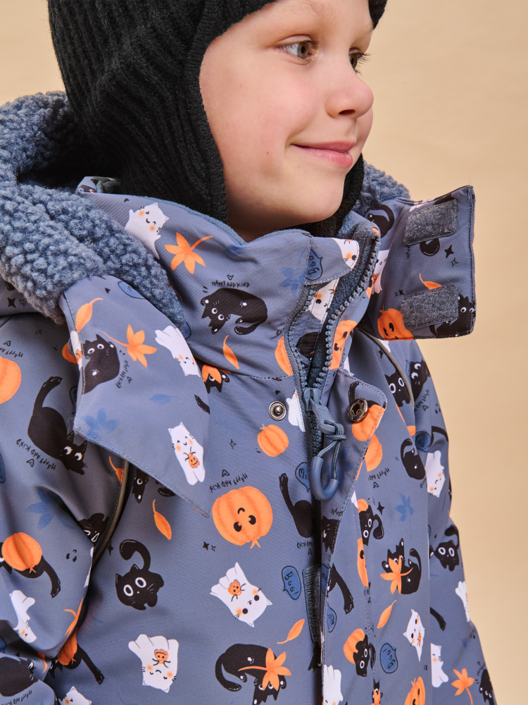 Внутри карманы утеплены мягким флисом. Замок дополнен тканевыми стопперами, что предохраняет его от разрыва. На пуллере эластичный запаянный шнур — ребёнку легко открывать и закрывать даже в варежках. Манжеты рукавов и брючин на комфортных широких резинках, это предохраняет от попадания внутрь снега. На муфтах брюк антискользящая резинка. Комбинезон дополнен съёмными силиконовыми штрипками. Область колен и нижняя часть спинки усилены более плотной тканью — можно смело кататься с горки и ползать на коленках сколько захочется. В каждом изделии нейм-лейбл! Ребёнок не потеряется и не потеряет комбинезон! Световозвращающие канты в проймах переда и спинки — безопасность в тёмное время суток. Модель универсальной расцветки с симпатичным принтом одинаково классно смотрится и на мальчиках, и на девочках. Комбинезон на молнии неприхотлив в уходе — ухаживать согласно указанным на вшивных ярлыках рекомендациям. Изделие выполнено из полиэстера с мембраной — оно не только защищает от холода и влаги, но и хорошо пропускает воздух, давая коже ребёнка дышать. Подкладка из мягкого, тёплого и дышащего флиса (по переду и спинке). В рукавах и штанинах подкладка из тонкого и гладкого полиэстера — благодаря этому ребенку легко надевать комбинезон, руки и ноги не путаются в рукавах и штанинах, а легко проскальзывают. Зимний комбинезон детский идеален для маленьких детей дошкольного и младшего школьного возраста. Рекомендуемый температурный режим: не ниже минус 25 градусов. В изделии использован один из высокотехнологичных утеплителей — феллекс 260 г/м2. Дышащие свойства мембраны: не менее 3000 г/м2/сут. — ребёнку будет комфортно на прогулке. Модель подходит для носки в детский сад, для прогулок и отдыха на свежем воздухе, активных игр.