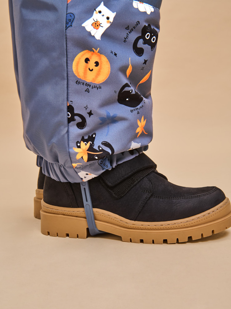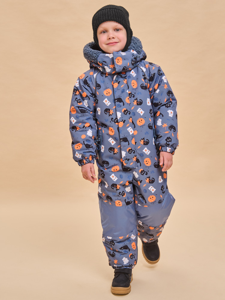 Внутри карманы утеплены мягким флисом. Замок дополнен тканевыми стопперами, что предохраняет его от разрыва. На пуллере эластичный запаянный шнур — ребёнку легко открывать и закрывать даже в варежках. Манжеты рукавов и брючин на комфортных широких резинках, это предохраняет от попадания внутрь снега. На муфтах брюк антискользящая резинка. Комбинезон дополнен съёмными силиконовыми штрипками. Область колен и нижняя часть спинки усилены более плотной тканью — можно смело кататься с горки и ползать на коленках сколько захочется. В каждом изделии нейм-лейбл! Ребёнок не потеряется и не потеряет комбинезон! Световозвращающие канты в проймах переда и спинки — безопасность в тёмное время суток. Модель универсальной расцветки с симпатичным принтом одинаково классно смотрится и на мальчиках, и на девочках. Комбинезон на молнии неприхотлив в уходе — ухаживать согласно указанным на вшивных ярлыках рекомендациям. Изделие выполнено из полиэстера с мембраной — оно не только защищает от холода и влаги, но и хорошо пропускает воздух, давая коже ребёнка дышать. Подкладка из мягкого, тёплого и дышащего флиса (по переду и спинке). В рукавах и штанинах подкладка из тонкого и гладкого полиэстера — благодаря этому ребенку легко надевать комбинезон, руки и ноги не путаются в рукавах и штанинах, а легко проскальзывают. Зимний комбинезон детский идеален для маленьких детей дошкольного и младшего школьного возраста. Рекомендуемый температурный режим: не ниже минус 25 градусов. В изделии использован один из высокотехнологичных утеплителей — феллекс 260 г/м2. Дышащие свойства мембраны: не менее 3000 г/м2/сут. — ребёнку будет комфортно на прогулке. Модель подходит для носки в детский сад, для прогулок и отдыха на свежем воздухе, активных игр.