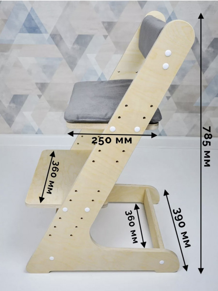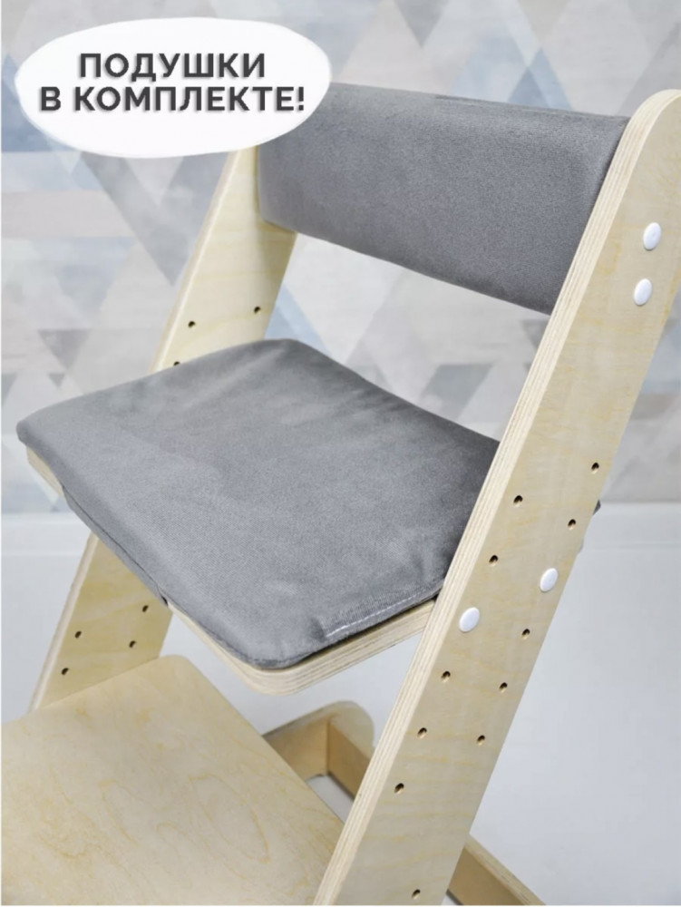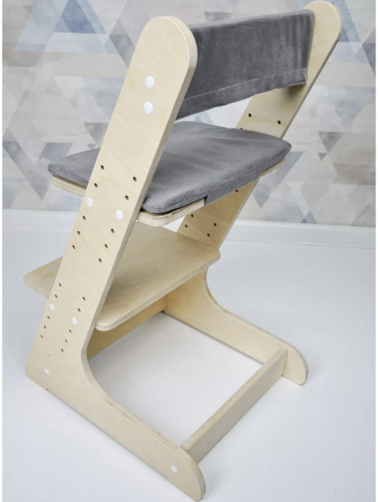 Rules Стульчик растущий детскийВ данный момент этот товар отсутствует в продаже. Возможно, у нас найдется аналогичный или похожий товар здесь. Детский растущий стул для формирования правильной осанки. Серые подушки для спинки и сиденья в комплекте. Стул растет вместе с ребенком, а также позволяет ему сидеть за одним столом со взрослыми. Детский растущий стул изготовлен из березовой фанеры высшего класса, предназначен для детей от 1 года. Острых углов у стула нет, все края закруглены. Материал подушек — велюр, наполнитель — поролон. |
