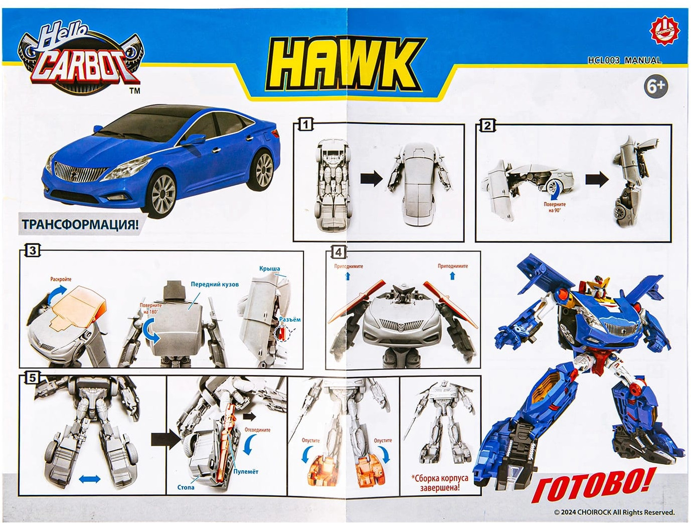 Hello carbot Робот-трансформер «Hawk»В данный момент этот товар отсутствует в продаже. Возможно, у нас найдется аналогичный или похожий товар здесь. Интерактивный робот игрушка быстро трансформируется в машинку и обратно, таким образом у игры появляется множество сценариев. Трансформера легко собрать и разобрать ребенку любого возраста благодаря простой и понятной, но в то же время прочной конструкции. |