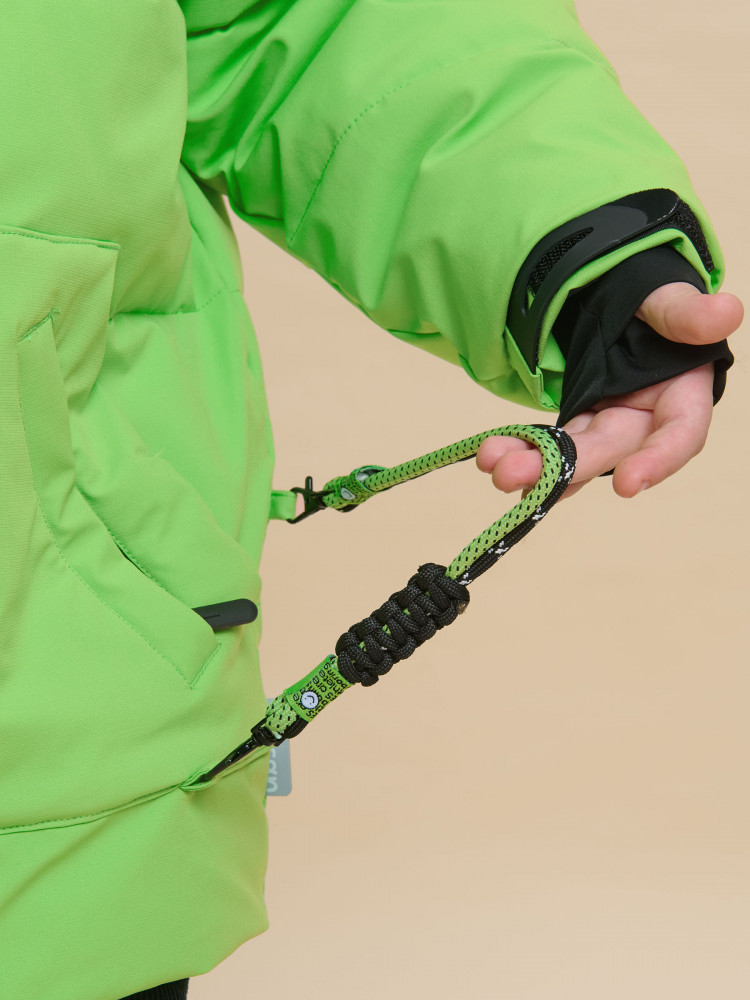 Пуховик зимний для мальчика из мембранной ткани. На внешнюю поверхность материала нанесена водоотталкивающая пропитка (DWR), она задерживает грязь и влагу снаружи — ребёнок не промокнет, есть дополнительная пропитка на внутренней стороне ткани. Куртка прямого оверсайз-силуэта. По низу рукавов манжета, застёгивается силиконовой патой на липучке (велкро). Внутри рукава ветрозащитная манжета из трикотажного полотна с прорезью для большого пальца. Зимний пуховик тёплый, по низу объём изделия регулируется эластичным шнуром со стопперами. Пуховик на мальчика дополнен карманами-кенгуру с магнитными застёжками. Карманы внутри утеплены мягким флисом. Пуховик в модном стиле стритвир. На левом кармане навесной шнур кислотного цвета. Он крепится с помощью двух карабинов за петельки в кармане и боковом шве куртки. В каждой куртке нейм-лейбл! Ребёнок не потеряется и не потеряет куртку! На спинке и в боковых швах расположены светоотражающие элементы — безопасность в тёмное время суток. Пуховик однотонный, без принта. Куртка выполнена из полиэстера (+мембраны), вставки из нейлона — она тёплая, не промокает, легко стирается, быстро сохнет, сохраняет отличную форму и цвет надолго. Подкладка из мягкого, тёплого и дышащего флиса (по стану, внутреннему воротнику и в капюшоне). В рукавах подкладка из полиэстера — ребенку легко надевать куртку.