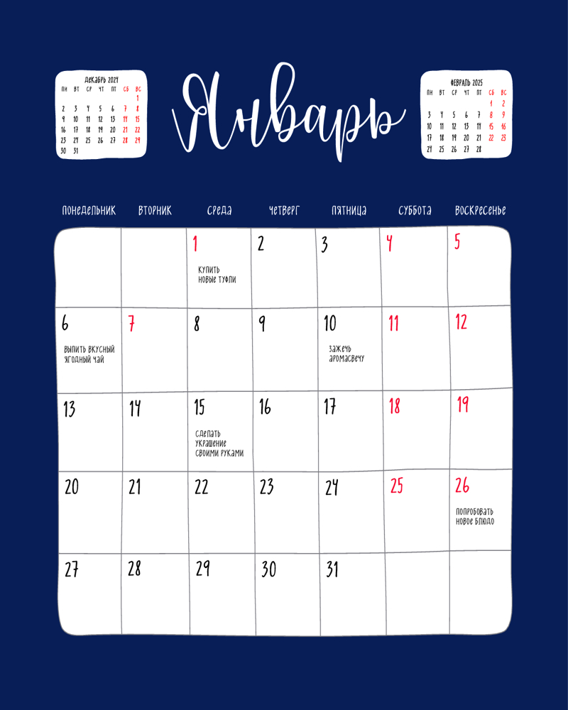 Календарь настенный на 2025 год «Год заботы о себе»В данный момент этот товар отсутствует в продаже. Возможно, у нас найдется аналогичный или похожий товар здесь. Серия: Календари настенные 2025 (300×300) Настенный календарь на 2025 год станет отличным инструментом для планирования и организации вашего времени. Он поможет вам отслеживать важные события, даты и встречи на протяжении всего года, при этом добавляя стильный акцент в интерьер вашего дома или офиса. |