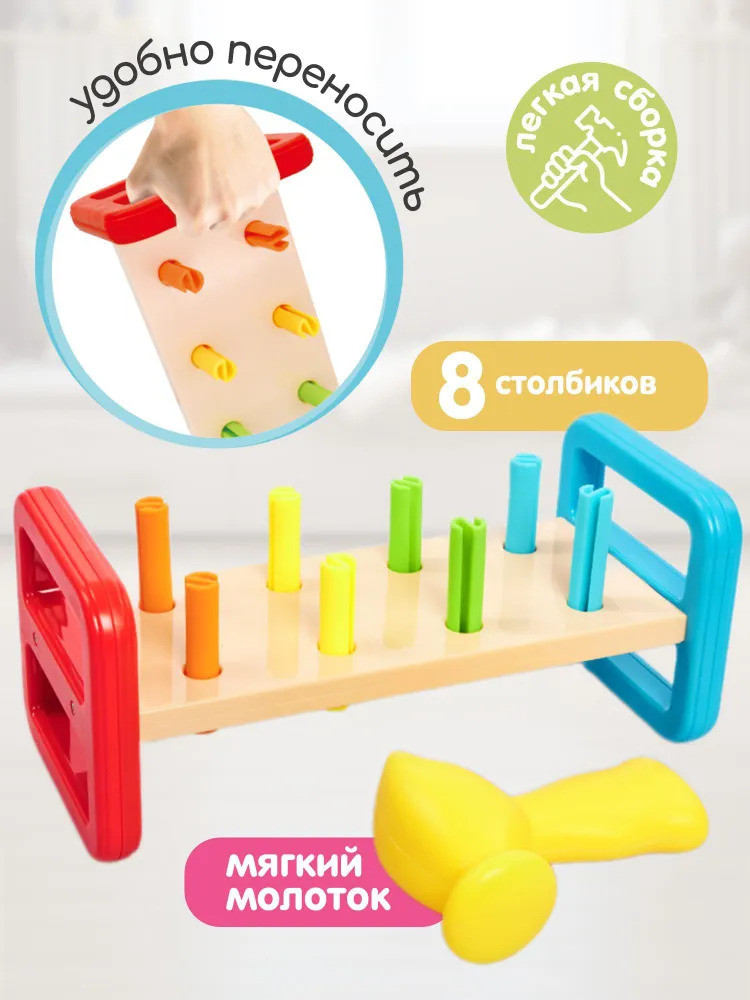 Десятое королевство Игрушка развивающая «Забивалка. Радужные столбики» с молотком-25% +111
