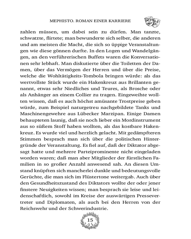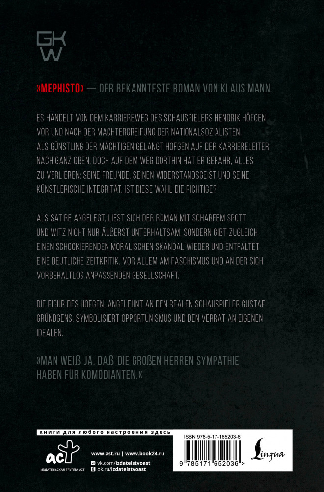 💳 Оплатить за товар можно при получении 🇰🇿 Есть бесплатная доставка по Казахстану от 1 дня 🎁 Копите бонусы с каждой покупки Серия: Goldene Kollektion der Weltliteratur Издание на немецком языке. Роман немецкого писателя Клауса Манна «Мефистофель: История одной карьеры», опубликованный в 1936 году, — это не просто история о взаимоотношениях диктаторской власти и творческой личности. Это суровое и мощное предупреждение о том, что общественные и личные компромиссы неизбежно приводят творческого человека к потере самого себя. Действие романа происходит в мрачной и опасной обстановке Германии 1930-х годов, где талантливый актер столичного театра Хендрик Хефген предает своих близких и свои идеалы, идет на сотрудничество с нацистами ради выживания, высокого положения в театральном мире и денег. |