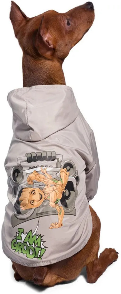 Дождевик-попона в стильном дизайне Грут выполнена из дышащего материала, который обеспечивает сухость собаки во время прогулок под дождем. Легко надевается и снимается, подходит для собак обоих полов. Имеется капюшон для любителей комфорта. Питомец практически не ощущает попону на себе. При этом он надежно защищает от ветра, дождя и прочих неприятных погодных условий. С такой одеждой ваш любимец всегда будет чувствовать себя безопасно.