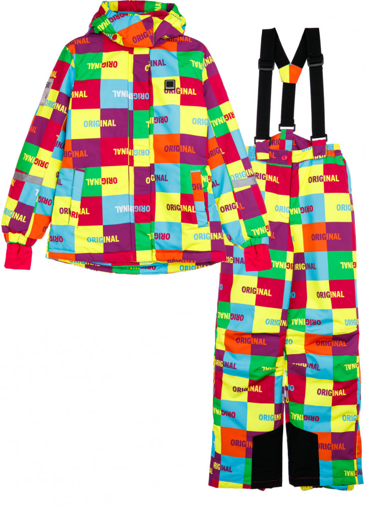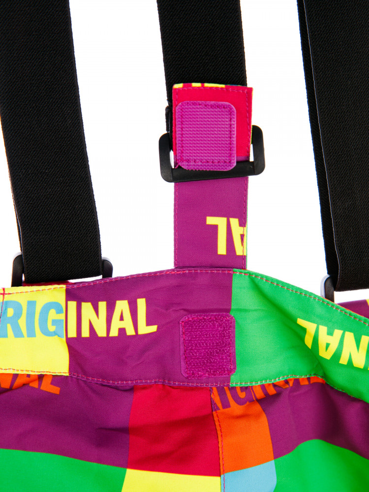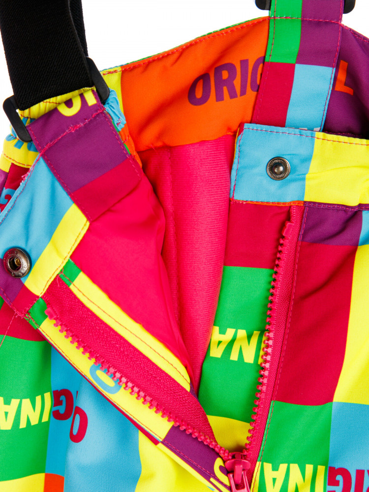 Брюки: утеплитель 100 г/м, карманы, снегозащитный манжет на брюках с резинкой Snow stopper. Регулировка длины брюк, регулировка ширины брюк липучкой, усиление по внутреннему шву. Резинка по талии, съемные бретели.