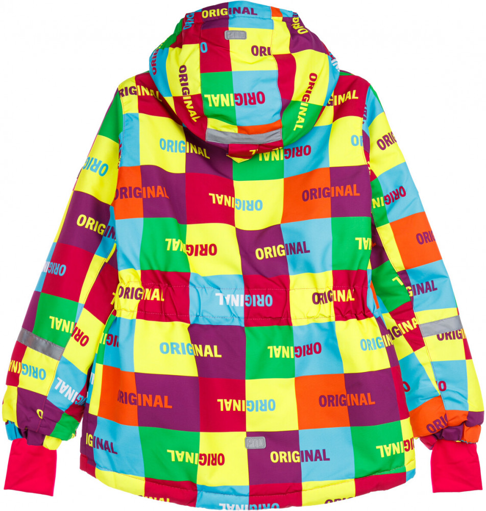 Куртка: подкладка — микрофлис, утеплитель 160 г/м, боковые карманы на липучке. Съемный капюшон с адаптацией по ширине резинкой, внешняя ветрозащитная планка на липучках, эргономичные рукава, внутренние лямки для снятия в помещении. Внутренний карман, снегозащитная юбка с резинкой Snow stopper;