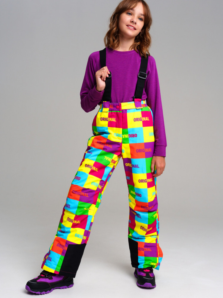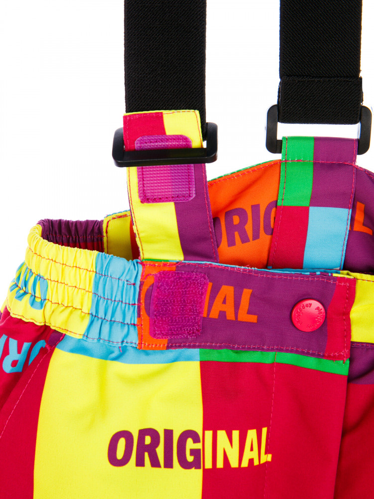 Брюки: утеплитель 100 г/м, карманы, снегозащитный манжет на брюках с резинкой Snow stopper. Регулировка длины брюк, регулировка ширины брюк липучкой, усиление по внутреннему шву. Резинка по талии, съемные бретели.