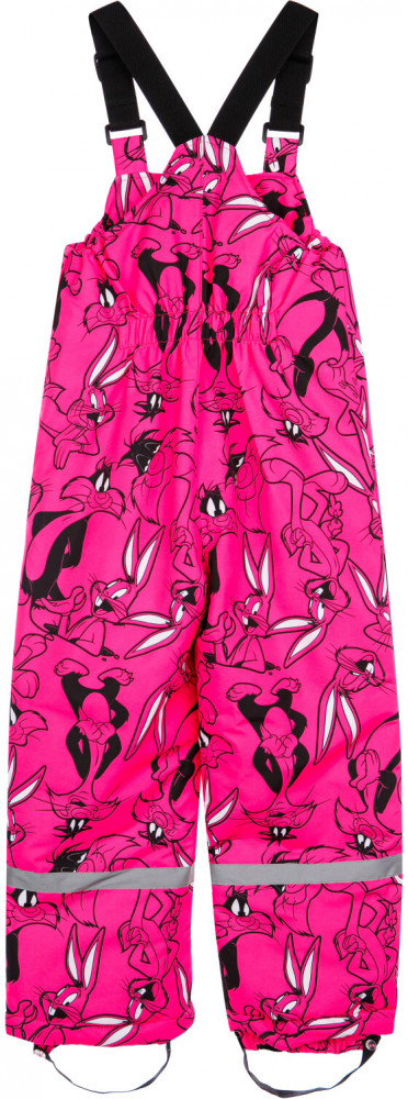 Полукомбинезон: утеплитель 180 г/м, подкладка — флис. Снегозащитный манжет на брюках с резинкой Snow stopper. Резинка по спинке, штрипки.
