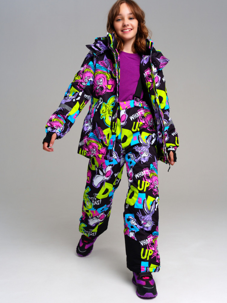 Зимний горнолыжный костюм для девочки-подростка. Утепленный горнолыжный комплект — идеальный выбор для активного отдыха на свежем воздухе в зимний период. Инновационный утеплитель и флисовая подкладка сохраняют тепло морозную погоду. Мембранный материал делает этот яркий и модный комбинезон непромокаемым: мембрана не пропускает влагу снаружи, но выводит её изнутри, что крайне важно во время подвижных игр и занятий спортом. Легкий, теплый и удобный, комплект идеально подходит для спорта, лыж, сноуборда и игр на свежем воздухе в холодный период года: зима, поздняя осень и ранняя весна.
